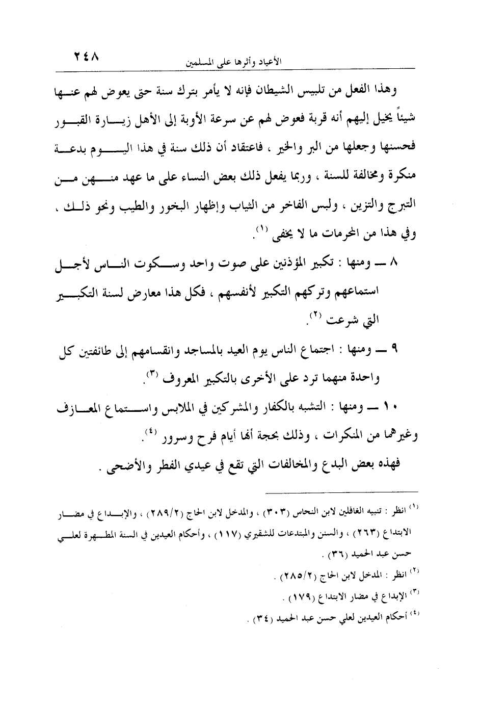 1 انظر: تنبيه الغافلين لابن النحاس (303) ، والمدخل لابن الحاج (2/289) ، والإبداع في مضار الابتداع (263) ، والسنن والمبتدعات للشقيري (117) ، وأحكام العيدين في السنة المطهرة لعلي حسن عبد الحميد (36) .