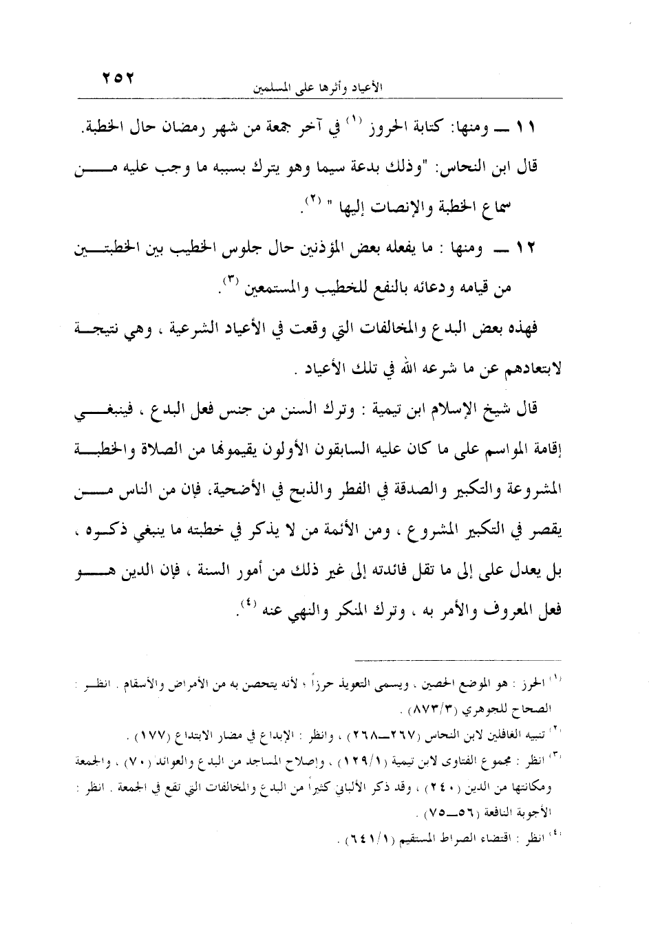 3 انظر: مجموع الفتاوى لابن تيمية (1/129) ، وإصلاح المساجد من البدع والعوائد (70) ، والجمعة ومكانتها من الدين (240) ، وقد ذكر الألباني كثيراً من البدع والمخالفات التي تقع في الجمعة. انظر: الأجوبة النافعة (56-75) .