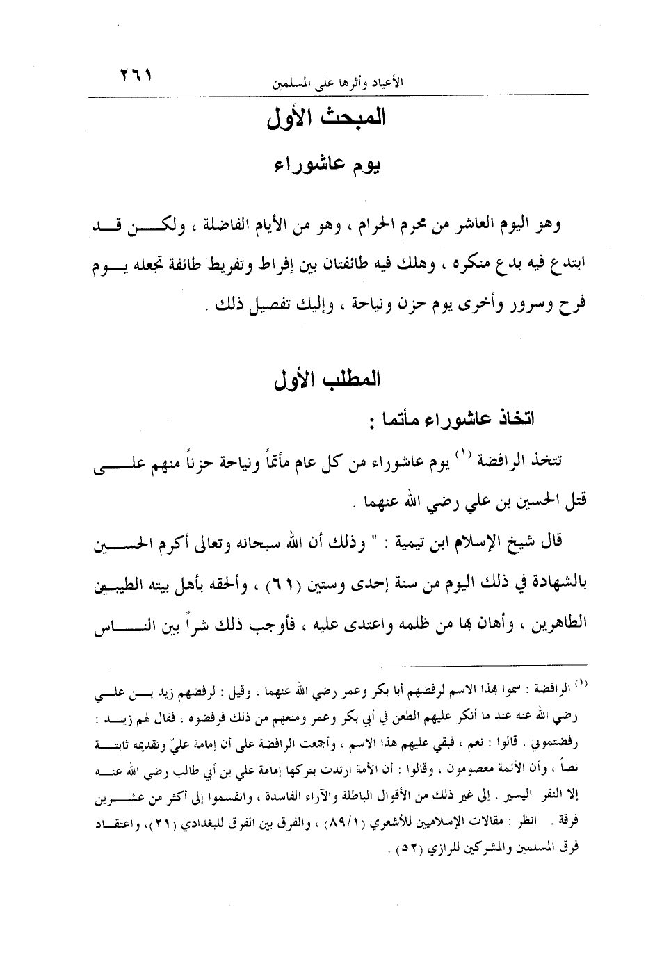 المطلب الأول: اتخاذ عاشوراء مأتما