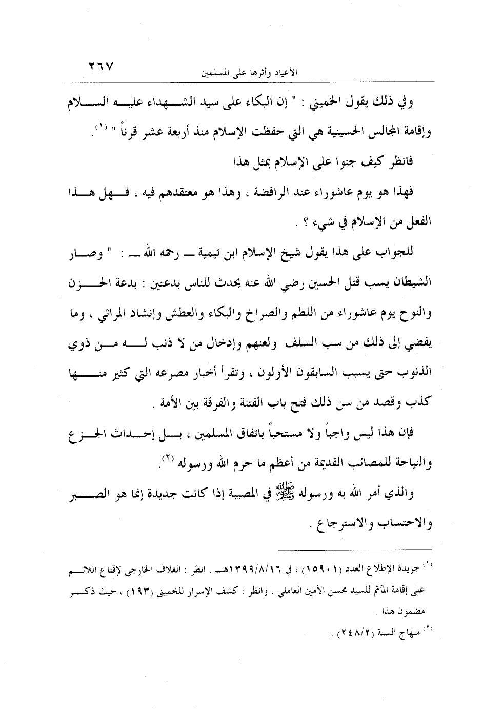 1 جريدة الإطلاع العدد (15901) ، في 16/8/1399هـ. انظر: الغلاف الخارجي لإقناع اللائم على إقامة المآثم للسيد محسن الأمين العاملي. وانظر: كشف الإسرار للخميني (193) ، حيث ذكر مضمون هذا.