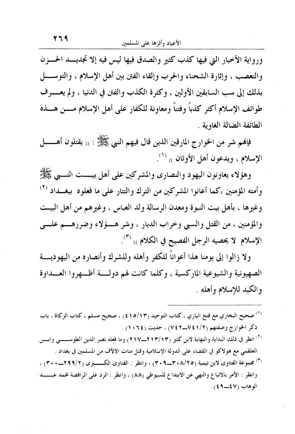 2 انظر في ذلك البداية والنهاية لابن كثير (13/213-217) وما فعله نصر الدين الطوسي وابن العلقمي مع هولاكو في القضاء على الدولة الإسلامية وقتل مئات الالآف من المسلمين في بغداد.