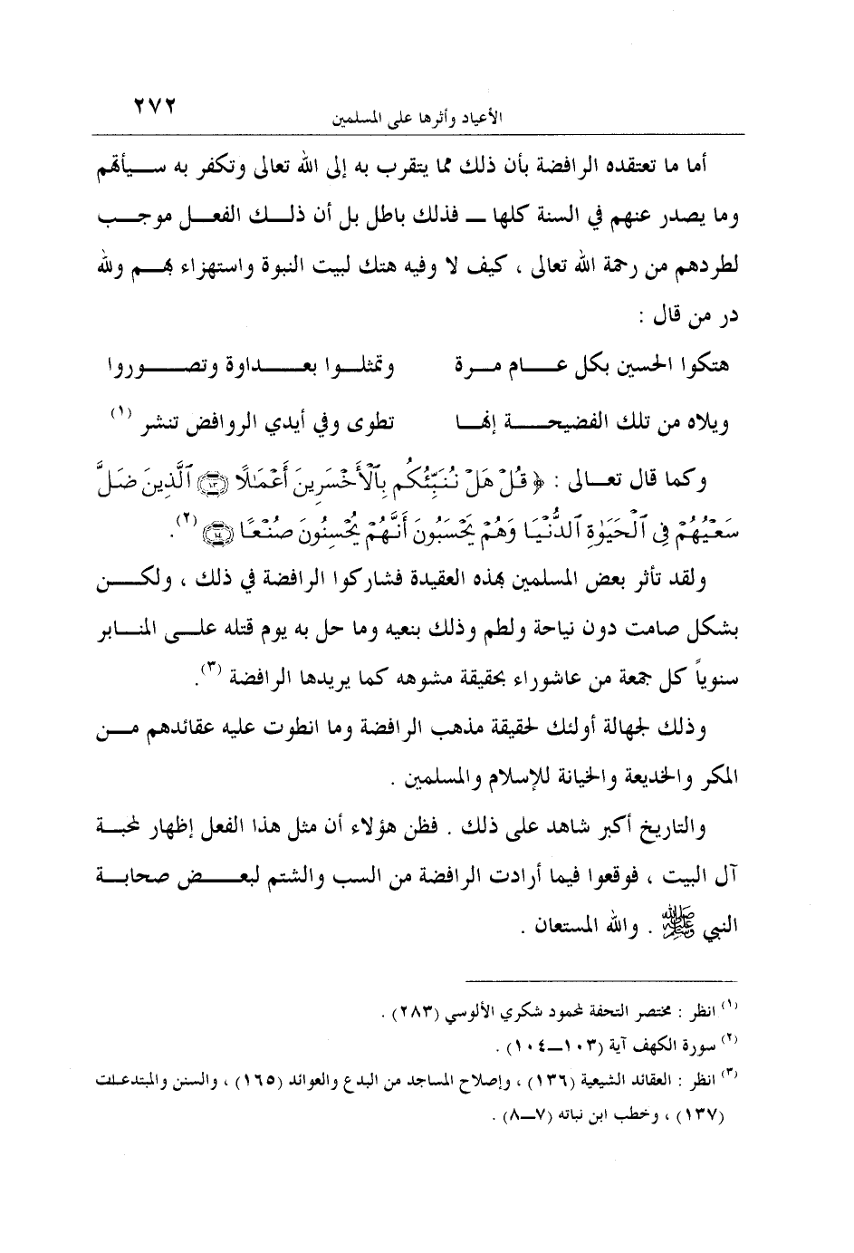 3 انظر: العقائد الشيعية (136) ، وإصلاح المساجد من البدع والعوائد (165) ، والسنن والمبتدعات (137) ، وخطب ابن نباته (7-8) .