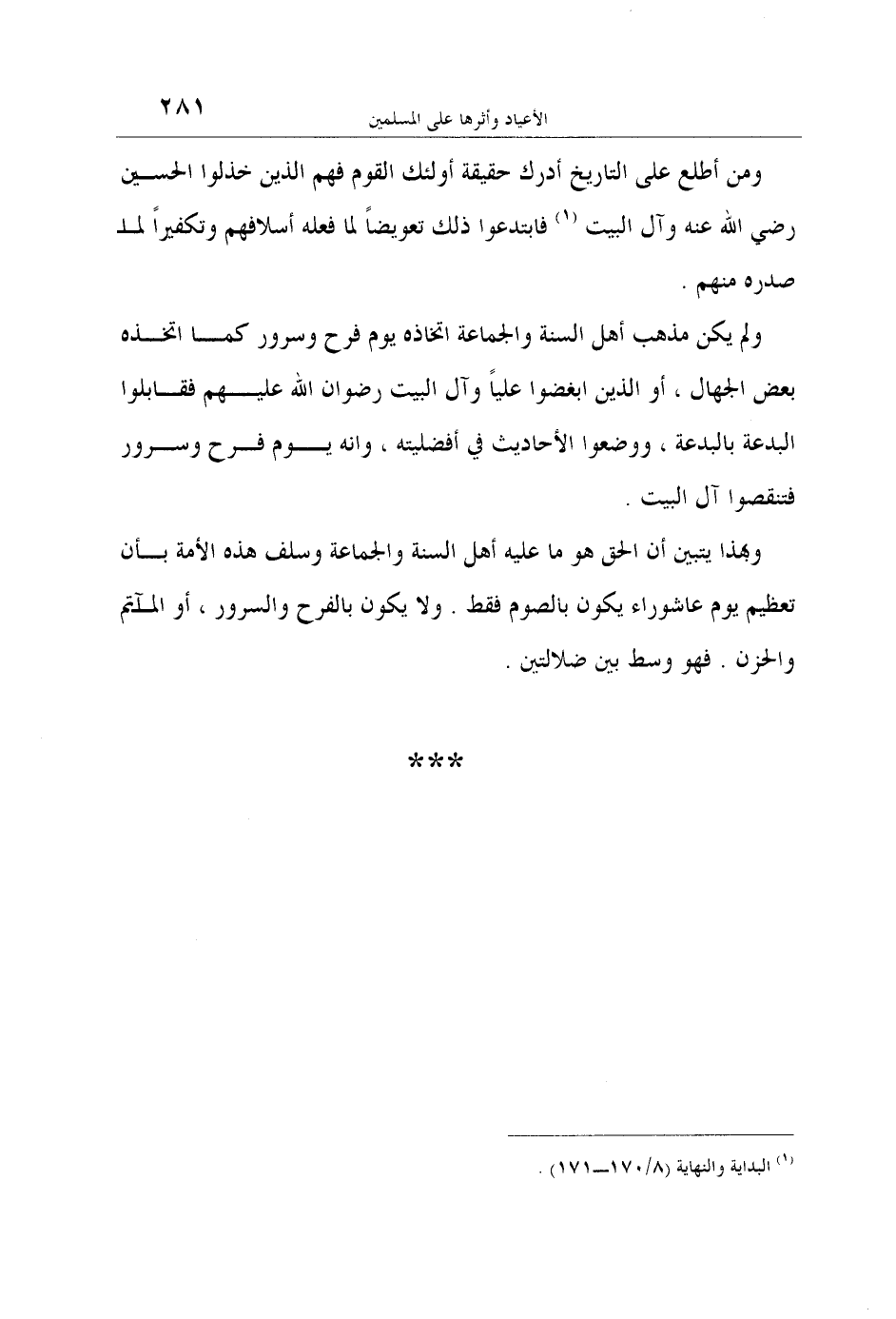 ومن أطلع على التاريخ أدرك حقيقة أولئك القوم فهم الذين خذلوا الحسين رضي الله عنه وآل البيت 1 فابتدعوا ذلك تعويضاً لما فعله أسلافهم وتكفيراً لما صدره منهم.