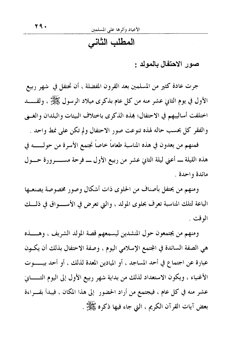 جرت عادة كثير من المسلمين بعد القرون المفضلة، أن تحتفل في شهر ربيع الأول في يوم الثاني عشر منه من كل عام بذكرى ميلاد الرسول صلى الله عليه وسلم، ولقد اختلفت أساليبهم في الاحتفال؛ بهذه الذكرى باختلاف البيئات والبلدان والغنى والفقر كل بحسب حاله لهذه تنوعت صور الاحتفال ولم تكن على نمط واحد.