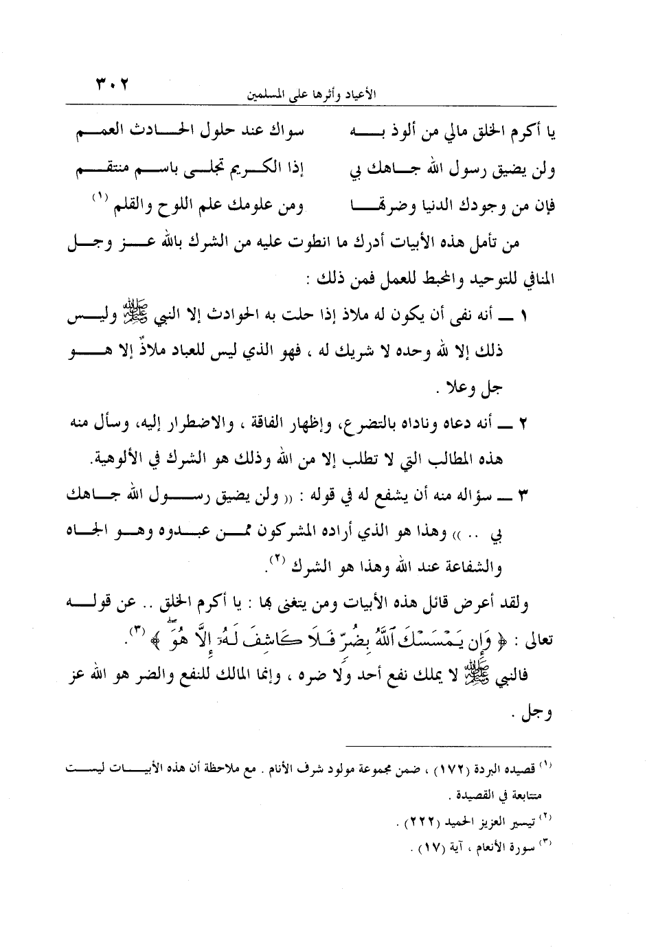 ولقد أعرض قائل هذه الأبيات ومن يتغنى بها: يا أكرم الخلق.. عن قوله تعالى: {وَإِنْ يَمْسَسْكَ اللَّهُ بِضُرٍّ فَلا كَاشِفَ لَهُ إِلَّا هُوَ} 3.