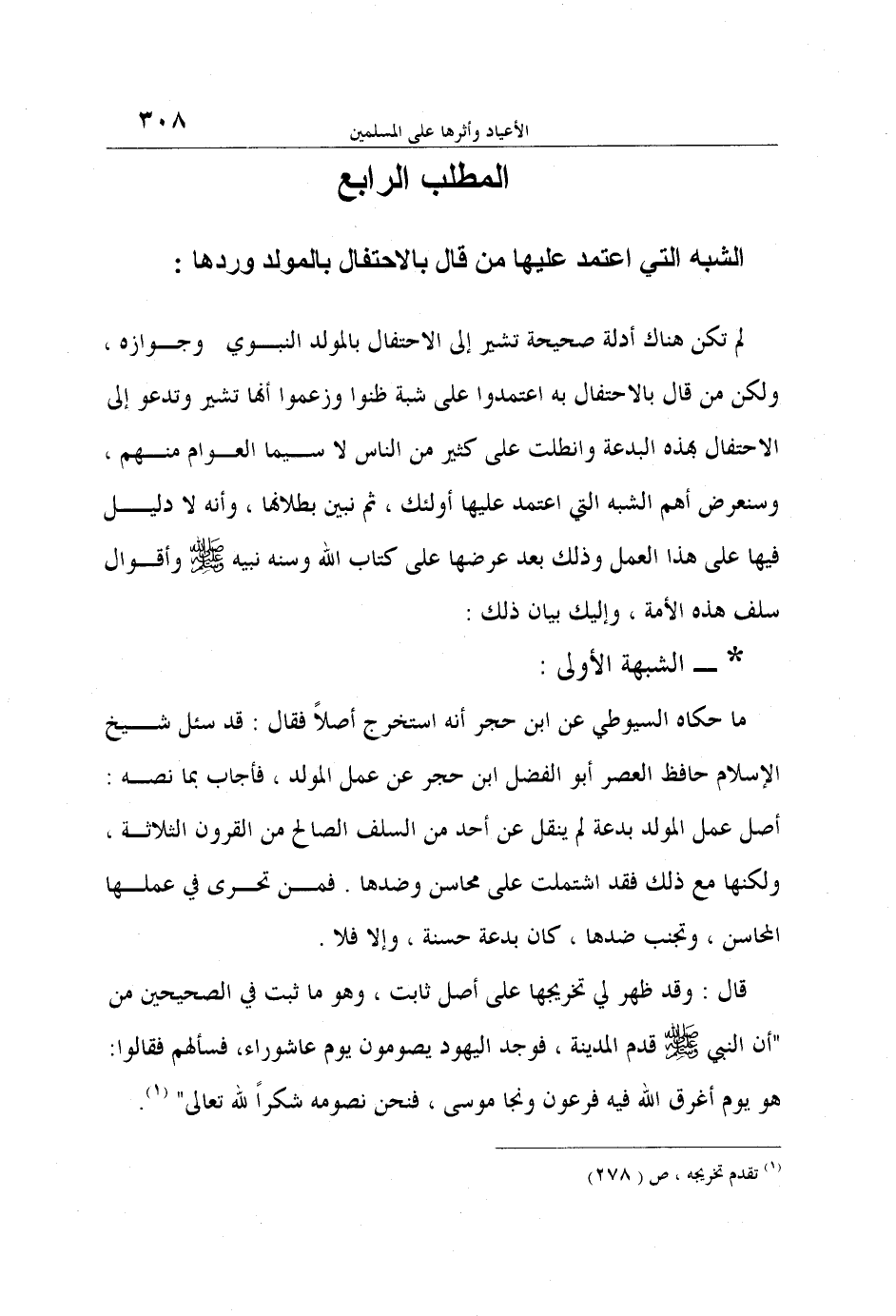 المطلب الرابع: الشبه التي اعتمد عليها من قال بالاحتفال بالمولد وردها: