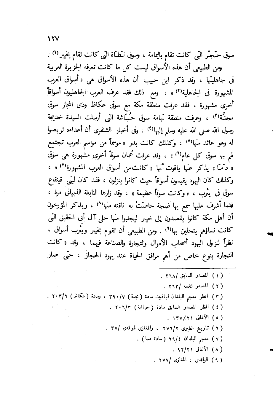ويبدو أنه كانت هناك طرق أخرى مهمة، ففي الأخبار القديمة أن النعمان كان يبعث بلطيمة كل عام للتجارة إلى عكاظ2، وأن عروة الرحال من بني كلاب أجارها في بعض الأعوام، حتى إذا وصل "إلى أهله دوين الجريب بماء يقال له أوارة" وثب عليه البراض فقتله، ثم مضى هاربا حتى أتى خيبر3. وهنا نتساءل: أي الطرق كانت تسلكها لطائم النعمان في قدومها من الحيرة إلى عكاظ؟