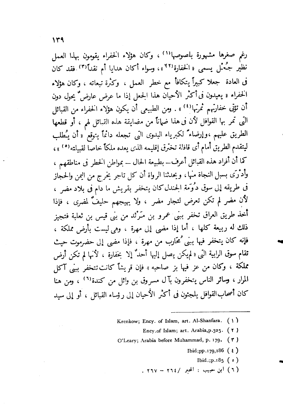 1 الواقدي: كتاب المغازي/ 196، 36. وقد ورد ذكرهما في شعر حسان بن ثابت "انظر ديوانه ط السعادة بالقاهرة/ 237 قصيدته الكافية"، وقد وصف المكيون فرات بن حيان بأنه دليل بطرق الصحراء يسلكها وهو مغمض العين قد دوخها وسلكها "المغازي/ 196"، وقد طلبوا إليه في أثناء الحصار الذي ضربه المسلمون على طريقهم التجاري إلى الشام أن يسلك بهم طريقا إلى أسواق الشام دون أن يمروا بمنطقة المدينة "المصدر السابق/ 196".