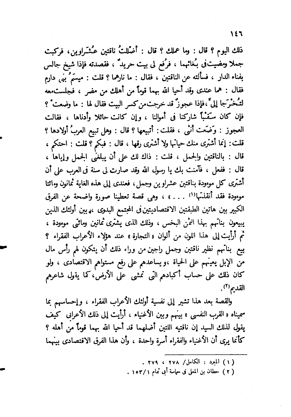 3 "وأكثر ما يطلق المال عند العرب على الإبل" "لسان العرب، مادة مول"، ويقول الزمخشري "مال العرب الإبل" "أساس البلاغة، المادة نفسها"، ويقول الشاعر "فلم أر مثل الإبل مالا لمفتن" "حماسة أبي تمام 4/ 67".