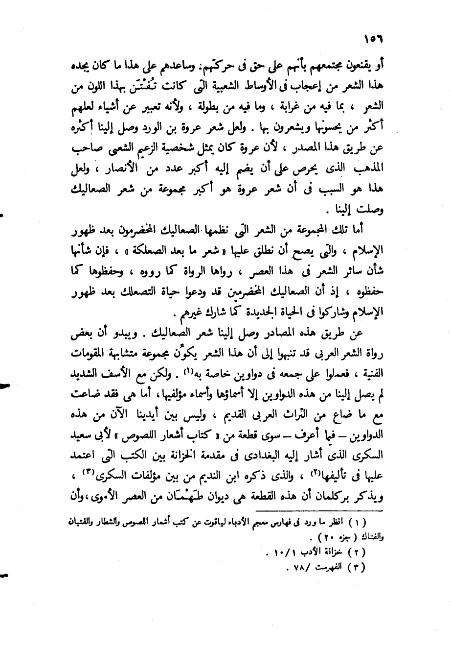 وأن يكونوا قد شاركوا سائر شعراء قبائلهم في حياتهم الفنية، وقد رأينا مثلا لهذا قيس بن الحدادية الذي شارك قبيلته اجتماعيا وفنيا مشاركة قوية، خاض معها غمار أيامها، بل قادها أحيانا إلى مواطن النصر، وتغنى بهذا كله في شعره. ومن الطبيعي أيضا أن تحرص القبيلة على هذا الشعر وترويه، وتتغنى به، وتتناقله جيلا بعد جيل، حتى يتلقفه من أفواه أبنائها رواة الشعر العربي الذين كانوا يشدون الرحال إلى البادية ليجمعوا شعر قبائلها. ومعنى هذا أن جزءا من شعر الصعاليك، وهو ما يصح أن نطلق عليه "الشعر خارج دائرة الصعلكة"، قد وصل إلينا عن طريق قبائلهم نفسها.
