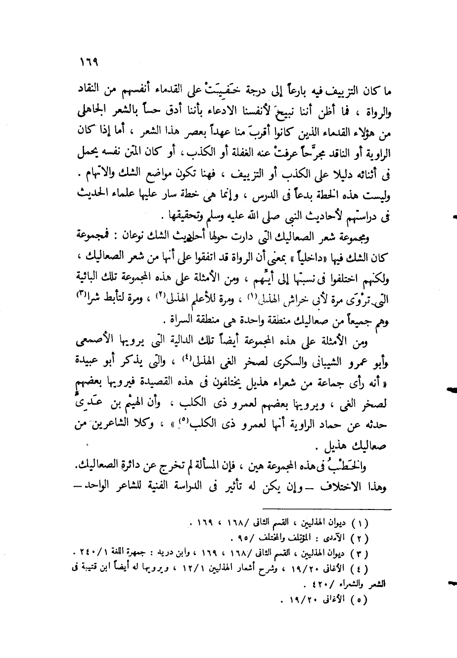 حين ننظر في "المادة" التي تجمعت لنا من كنوز ديوان الصعاليك نلاحظ عليها ثلاثة أشياء: قلتها، وكثرة الاضطراب في رواية نصوصها، ثم الشك الذي يحيط ببعض نصوصها.