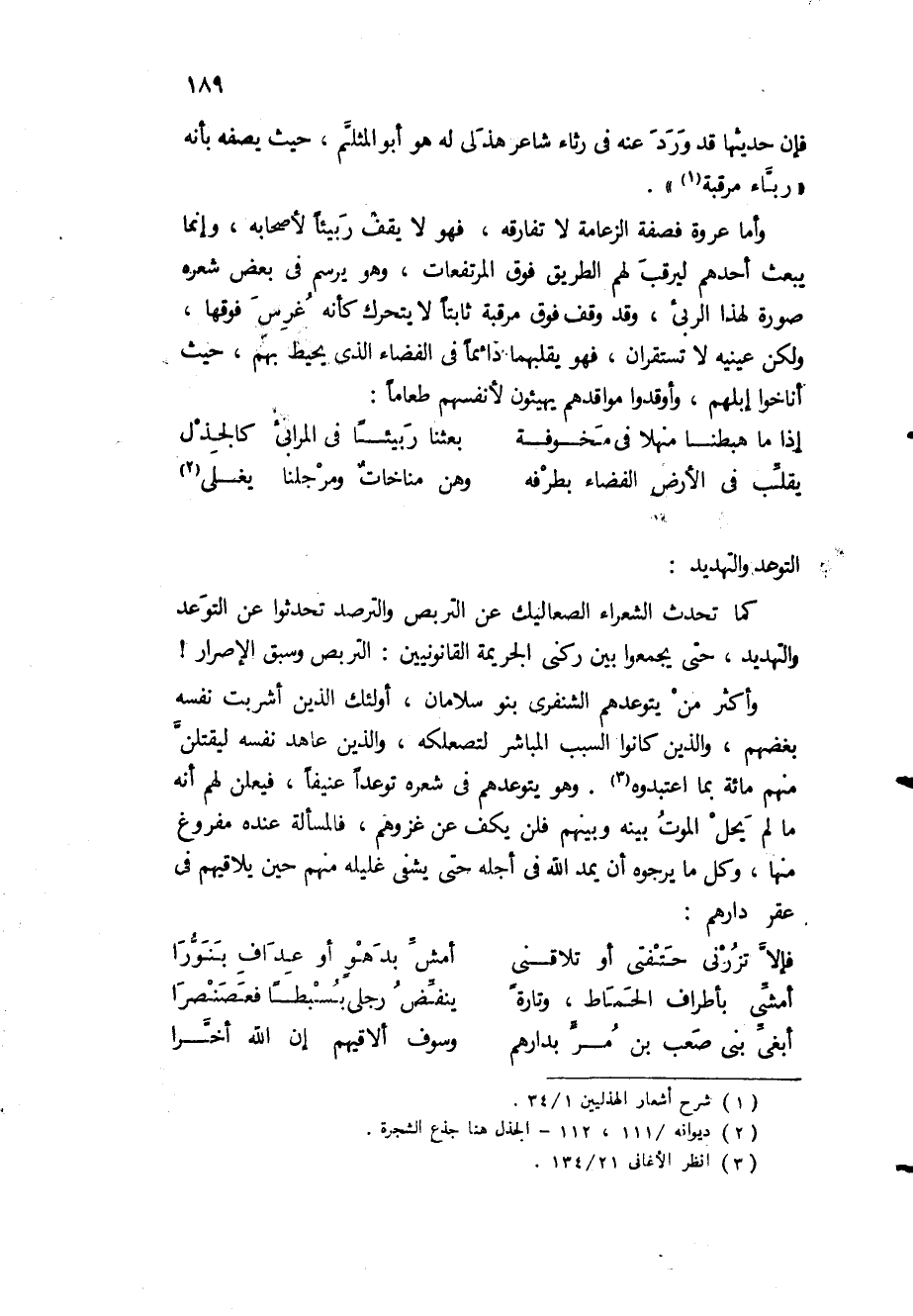 فإذا ما قتل الشنفرى، ووقف تأبط شرا يرثيه، لم ينس تلك المراقب الشماء التي طالما ربض فوقها في انتظار فرائسه، فرائس الغزو وفرائس الثأر: