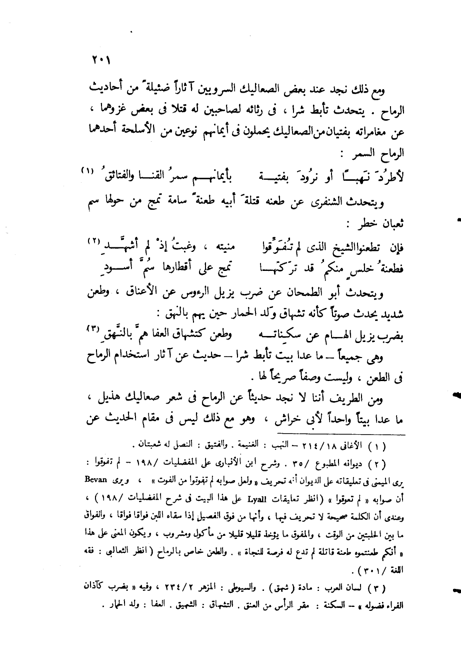 1 الأغاني 21/ 141، 142. وديوانه المطبوع / 34. وديوانه المصور، لوحة رقم 52، مع اختلاف في الروايات - النزع: مد القوس. مخلج: من خلج بمعنى جذب وغمز وانتزع، وفي نسختي الديوان "محلج" من حلج النداف. الأميم: المشجوج على أم رأسه.