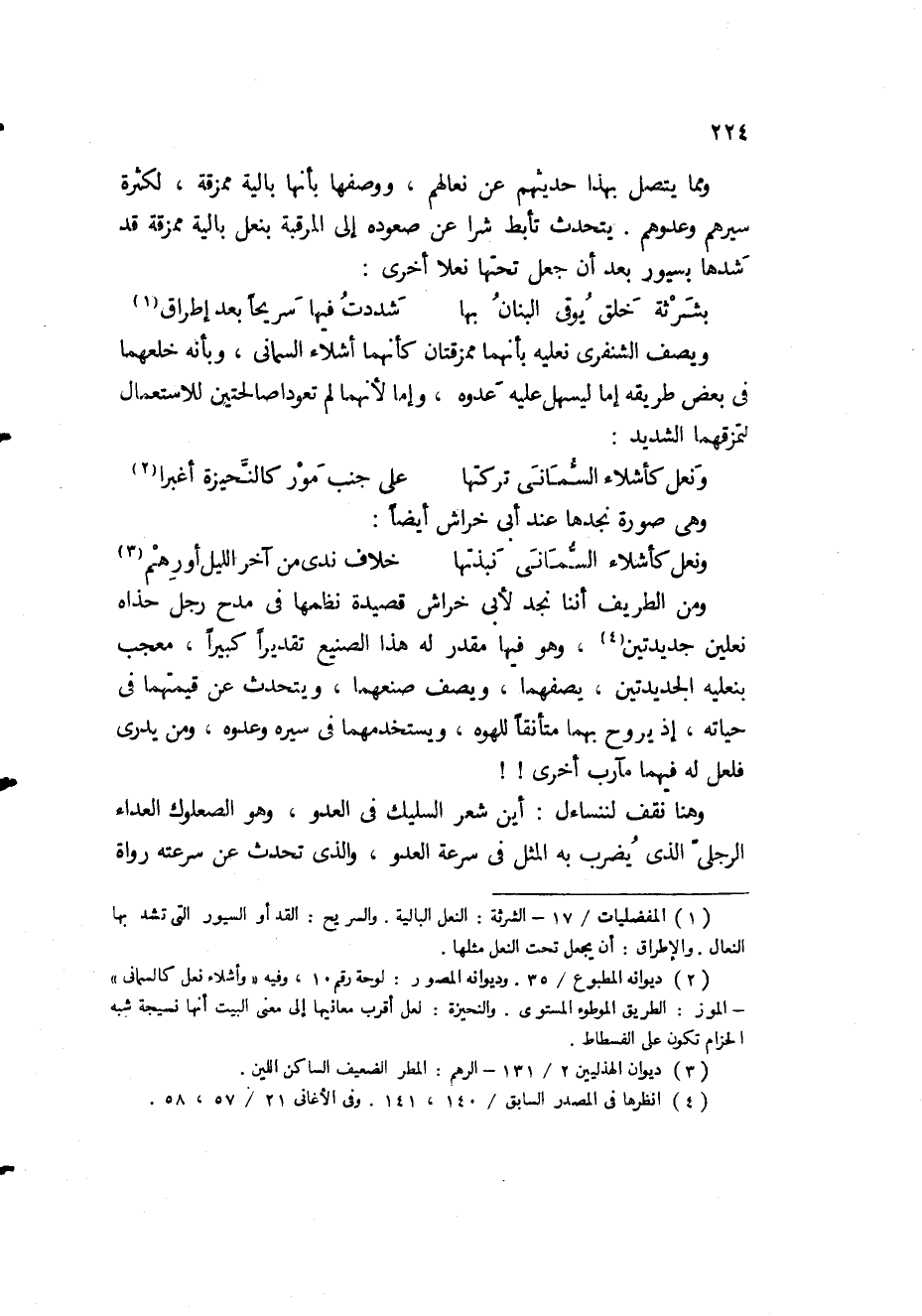 يبدو لي أن سبب ذلك أن الصعاليك العدائين كانوا ينظرون إلى الخيل على أنها أقل منهم سرعة، وهي نظرة يؤيدها واقع حياتهم، وقد رأينا في الفصل الأول من الباب الأول أن رواة الأدب العربي يذكرون عنهم أنهم كانوا يسبقون الخيل، ويروون عنهم قصصا في هذا الصدد، ومهما يكن من مبالغة في هذه القصص فإنها تصور أصداء حقيقة واقعية، وقد فسرنا هذه الظاهرة في حياة الصعاليك العدائين عند تفسيرنا الجغرافي لظاهرة التصعلك، وانتهينا إلى أنها -على ما فيها من غرابة- ليست بالمستحيلة في الحياة الواقعية. فإذا أضفنا إلى هذا أن الصعاليك العدائين لم يكونوا على صلة دائمة بالخيل، وإنما كنت صلتهم بها صلة عداوة، وهي تلك الصلة بين المطارد والطريد مما جعل نفوسهم مشبعة بالسخط على ذلك الحيوان السريع الذي يستغله أعداؤهم في مطاردتهم، استطعنا أن نجد تعليلا آخر لهذه المسألة.