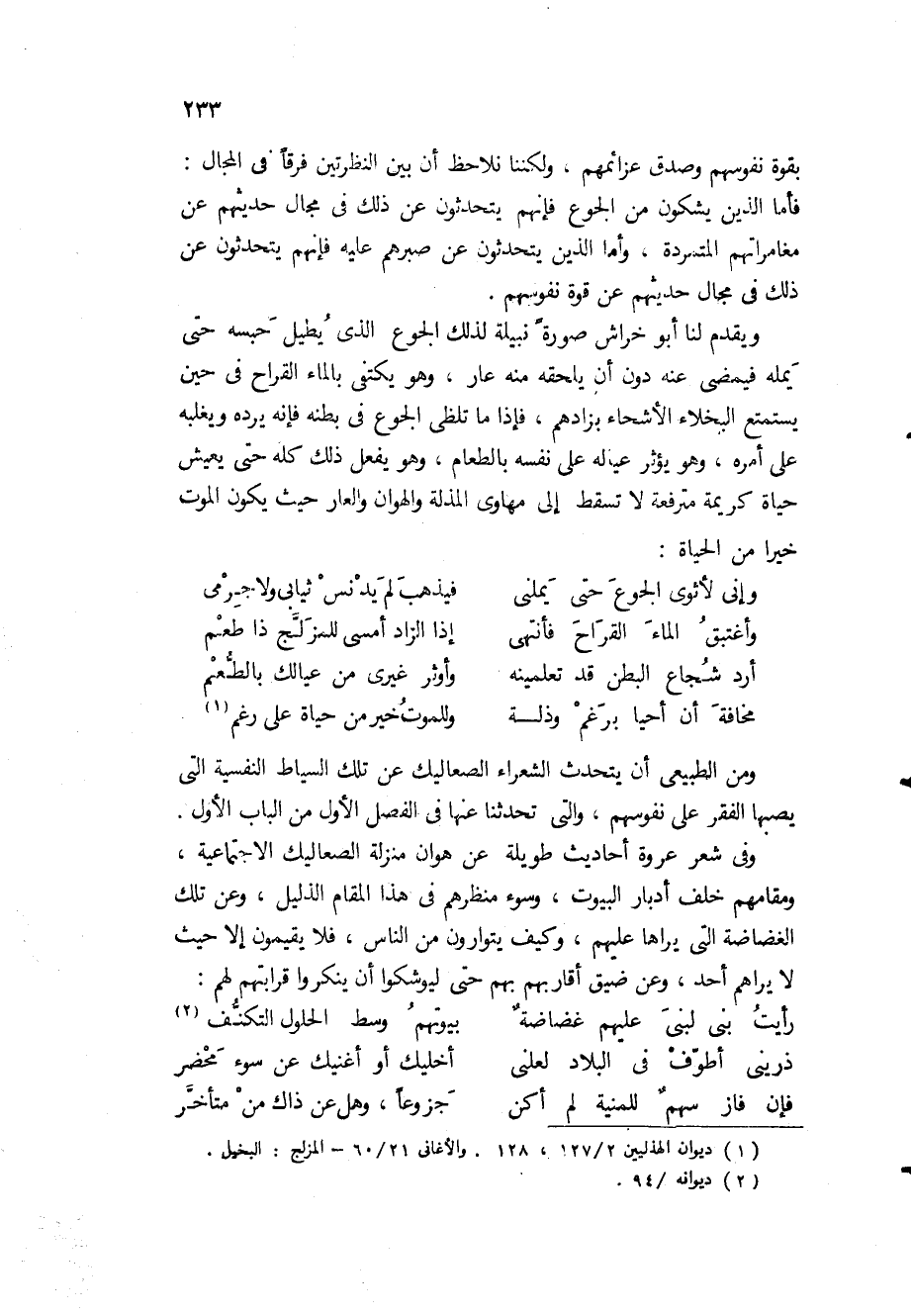 المحاولة "المكشوفة" لمدارة فقره حين ادعى أنه زعم من هذه المرأة التي يسبها، ومع ذلك فهو يرد عليها في آخر مقطوعته بأنه يفخر بأكل هذا اللحم الهزيل، ما دامت نفسه لم يمسسها عار ولا إثم: