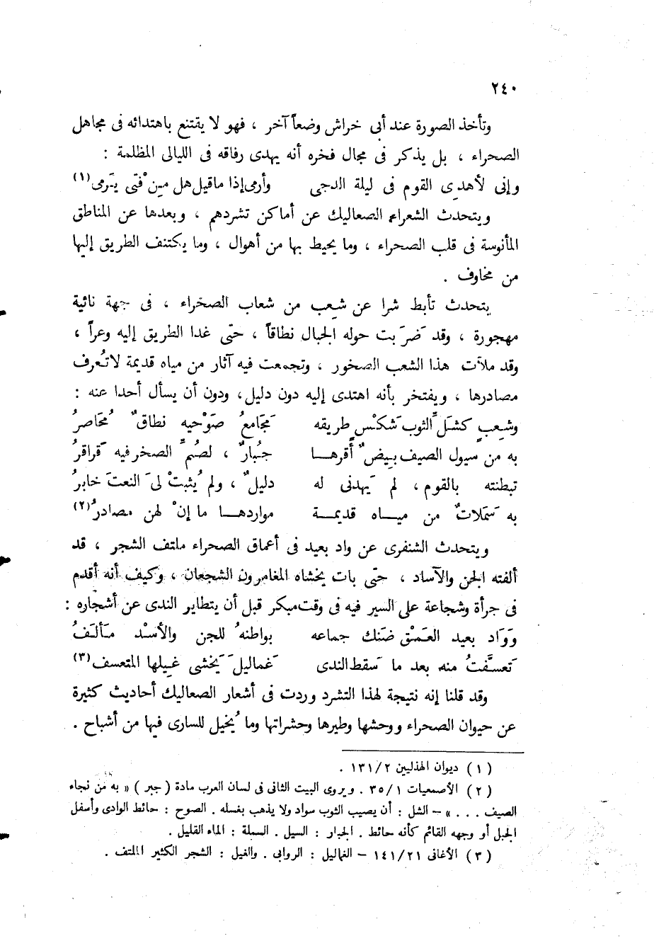 وقد تحدث الشعراء الصعاليك عن تشردهم في أرجاء الصحراء الموحشة، ووديانها المخيفة، وافتخروا باهتدائهم فيها دون دليل، أو قيامهم بمهمة الدليل لجماعة من رفاقهم، واتخذوا من هذا مادة للفخر بأنفسهم، أو لمدح رفاقهم الصعاليك. يفتخر تأبط شرا -في حديثه إلى امرأة خطبها فامتنعت عليه- بأنه لطول تشرده ألفته وحش الصحراء واطمأنت إليه، حتى لتوشك أن تصافحه لو أن وحشا تصافح إنسا: