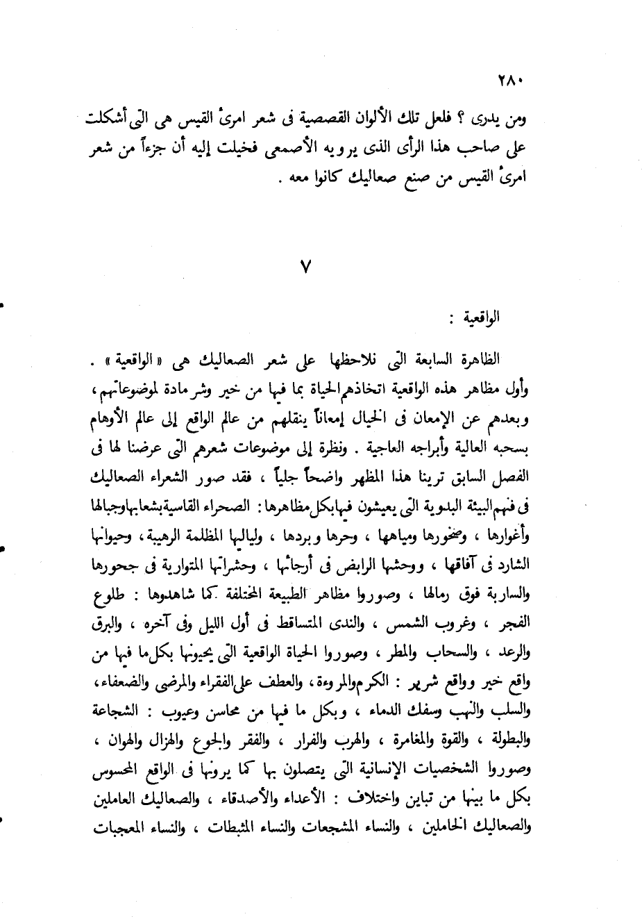 صريعة؟ وهل تائية الشنفرى المفضلية -إذا أخرجنا منها مقدمتها الغزلية- إلا قصة غزوة من غزواته مع جماعة من رفاقه يقص فيها استعدادهم للغزوة، ثم خروجهم لها، ومضيهم في طريقهم إليها، ثم تربصهم بأعدائهم، وانتظارهم الفرصة المواتية، وما كانوا يفعلونه في هذه الفترة من الانتظار والتربص، ثم تحقيق أهدافهم التي كانوا يسعون إليها، ثم تعليق من الشاعر على هذه القصة؟ وهل بائية الأعلم1 إلا قصة نفسية دقيقة تبدأ مباشرة بمنظر الشاعر الصعلوك مع صاحب له وهما يفران من أعدائهما الذين يطاردونهما مطاردة عنيفة تستمر حتى ينتصف النهار حين يصل الصعلوكان إلى منطقة الأمان؟ وهي قصة وإن تكن أحداثها قليلة فإن أروع ما فيها ذلك التحليل النفسي الدقيق لنفسية الهارب المذعور والمطارد الطامع في إدراكه، وذلك التصوير النفسي الرائع لخوف الهارب المذعور من الموت وحرصه على الحياة حين يشتد من خلفه الخطر، ثم طمأنينه نفسه بعد نجاته وتذكره تلك "العقد النفسية" التي تدفع به إلى مثل هذه المآزق الخطرة: فقره، وهوان أسرته، وترف الأغنياء من حوله. والقصيدة، أو القصة، من هذه الناحية من الممكن أن تسلك في عداد القصص النفسية التي يعرفها العصر الحديث.