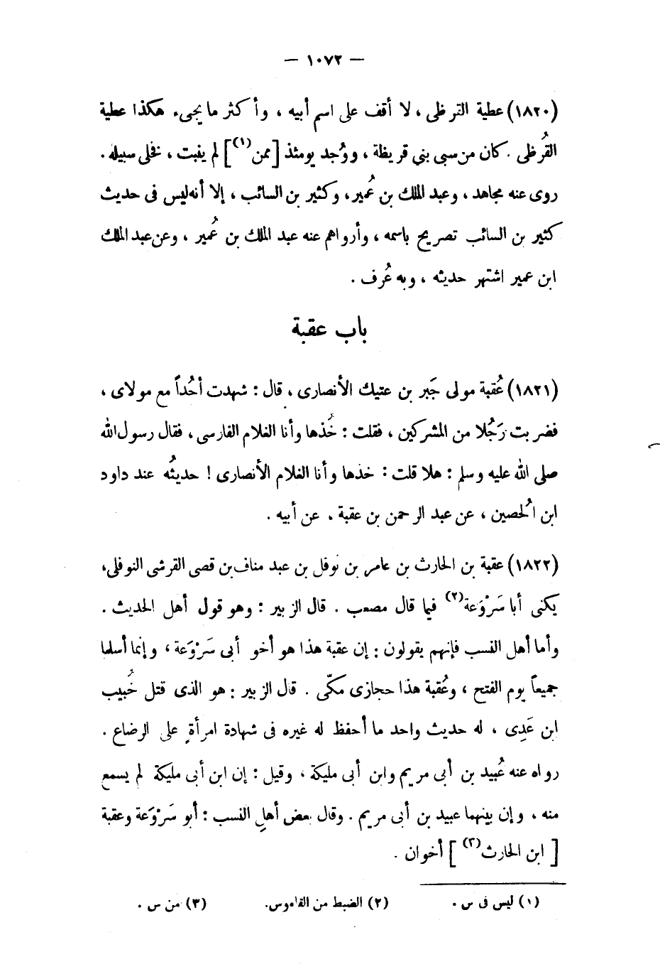 (١٨٢١) عقبة مولى جبر بْن عَتِيك الأَنْصَارِيّ،