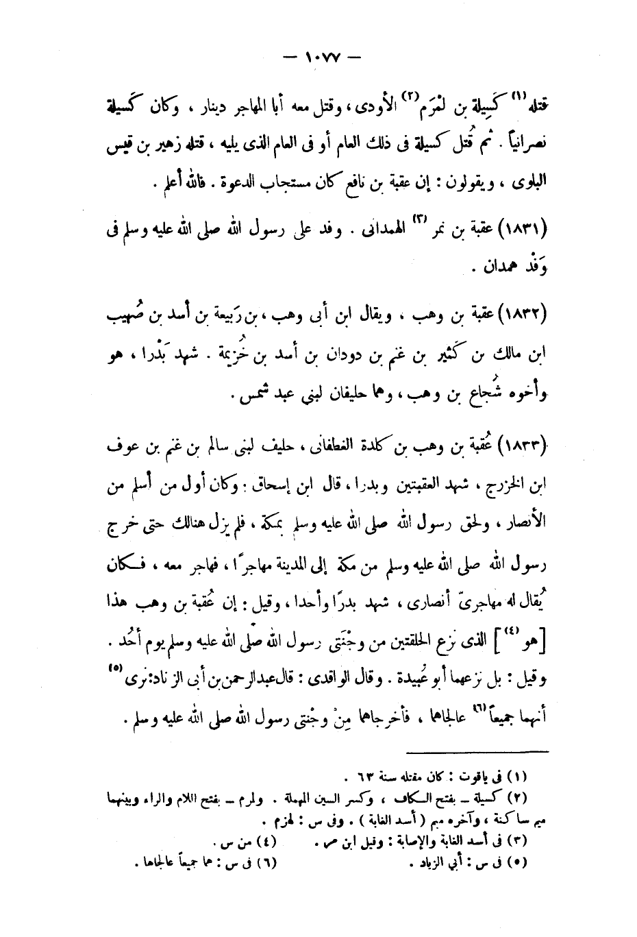(١٨٣٣) عقبة بْن وَهْب بْن كلدة الغطفاني،