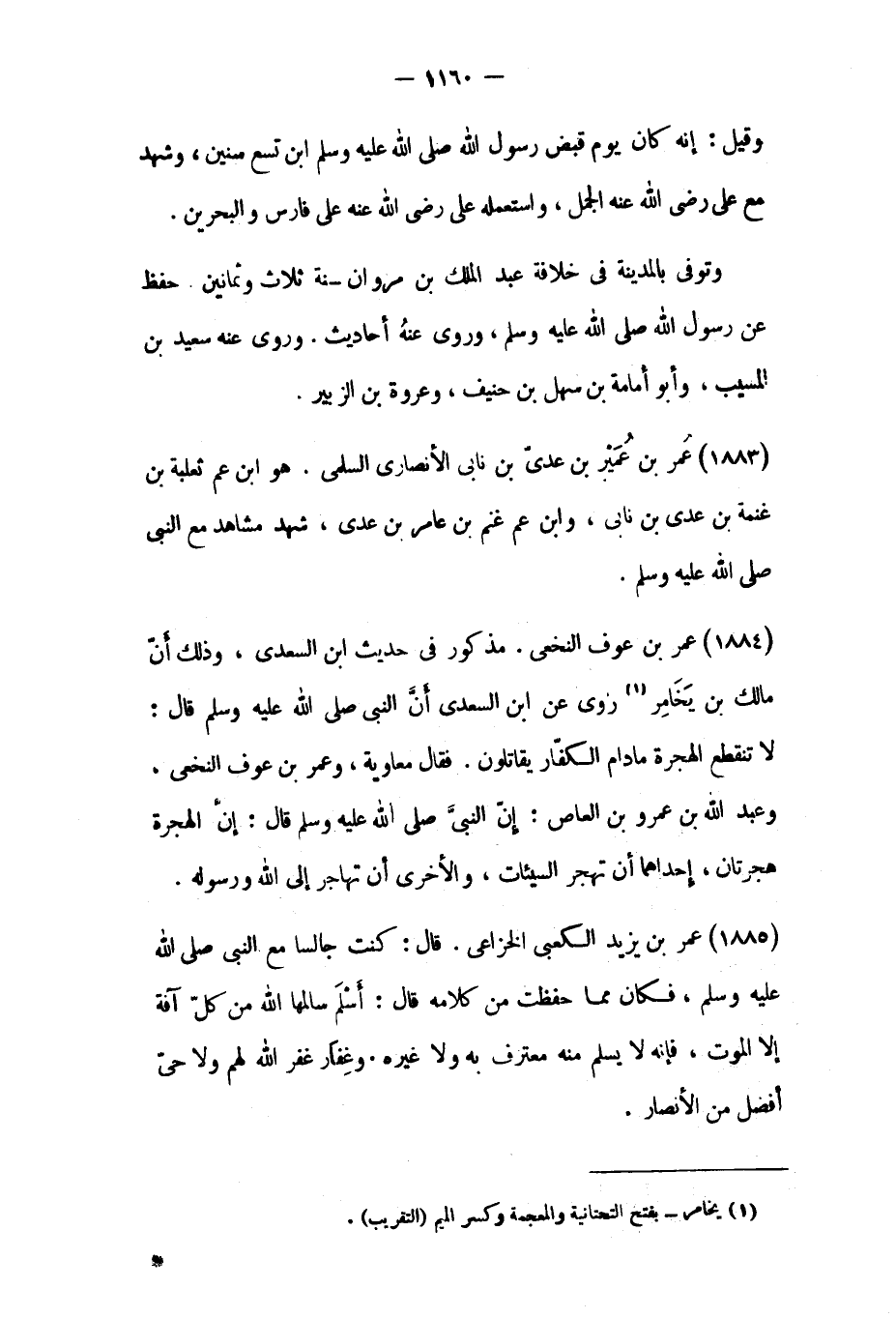 (١٨٨٣) عمر بْن عُمَيْر بْن عدي بْن نابي الأَنْصَارِيّ السُّلَمِيّ.