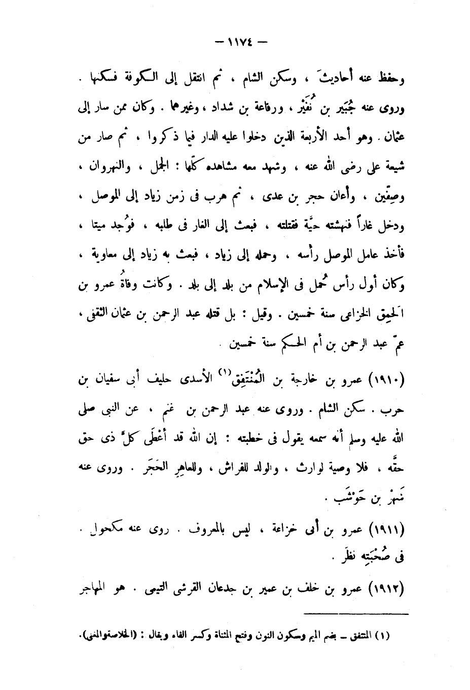 (١٩١٠) عمرو بْن خارجة بْن المنتفق [١] الأسدي حليف أَبِي سُفْيَان بْن حرب.