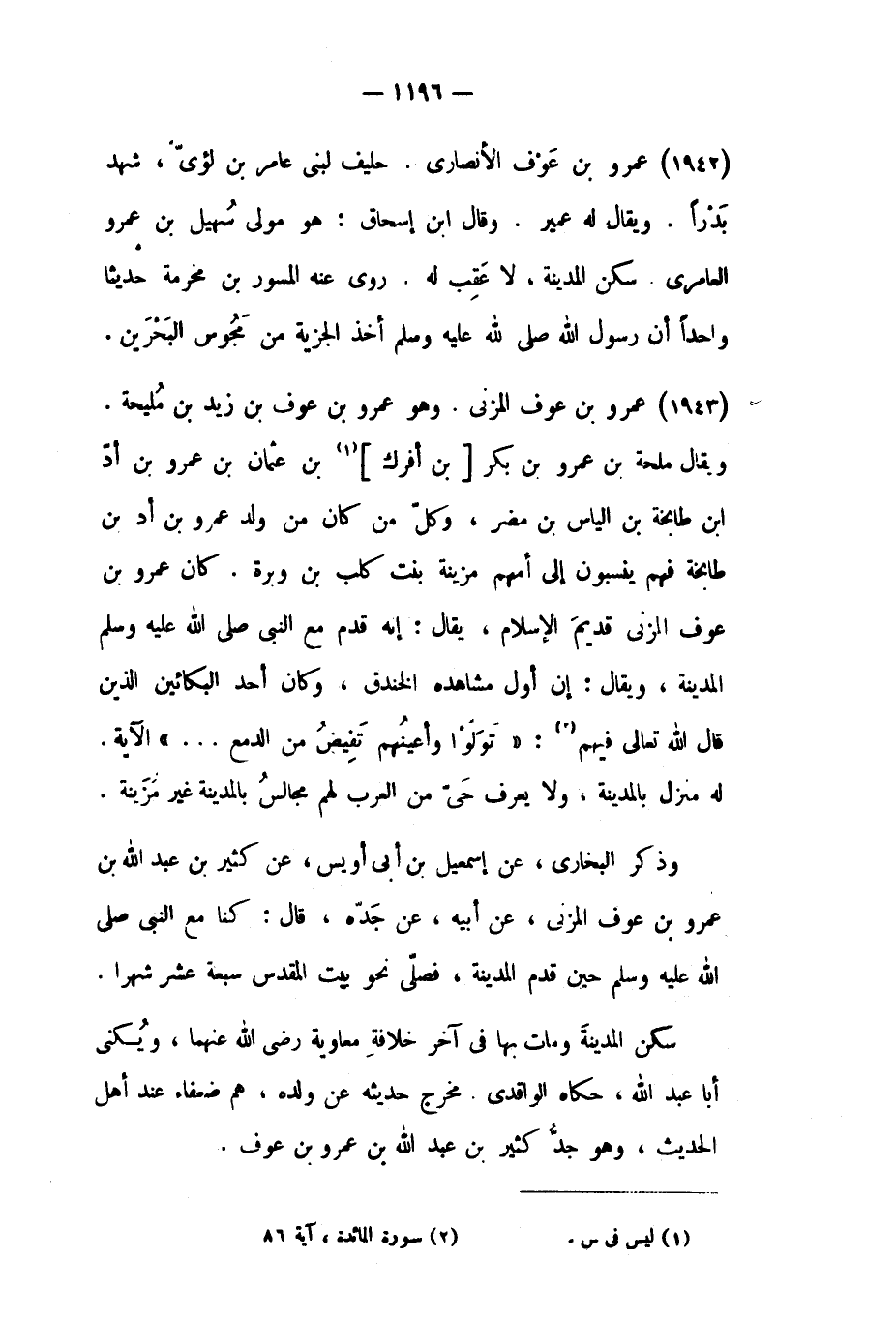 (١٩٤٢) عمرو بْن عوف الأَنْصَارِيّ. حليف لبني عَامِر بْن لؤي،