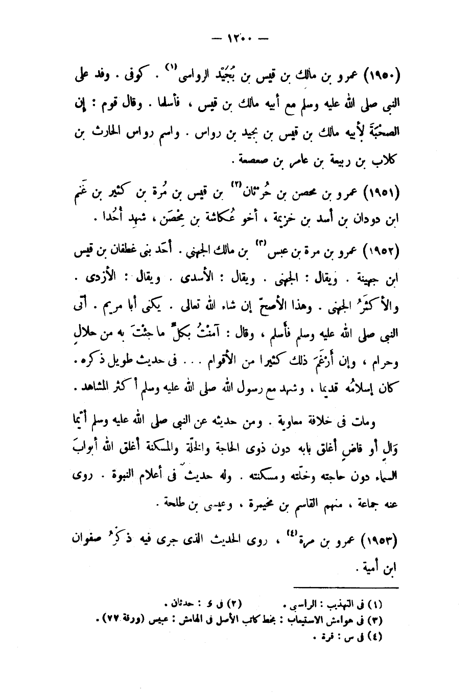 (١٩٥٢) عمرو بْن مُرَّةَ بْن عبس [٣] بْن مَالِك الجهني.