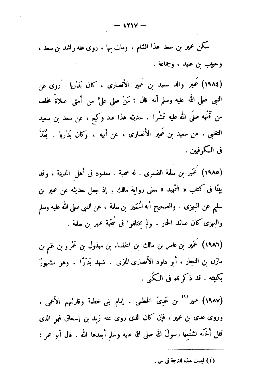 (١٩٨٤) عمير والد سَعِيد بْن عُمَيْر الأَنْصَارِيّ،