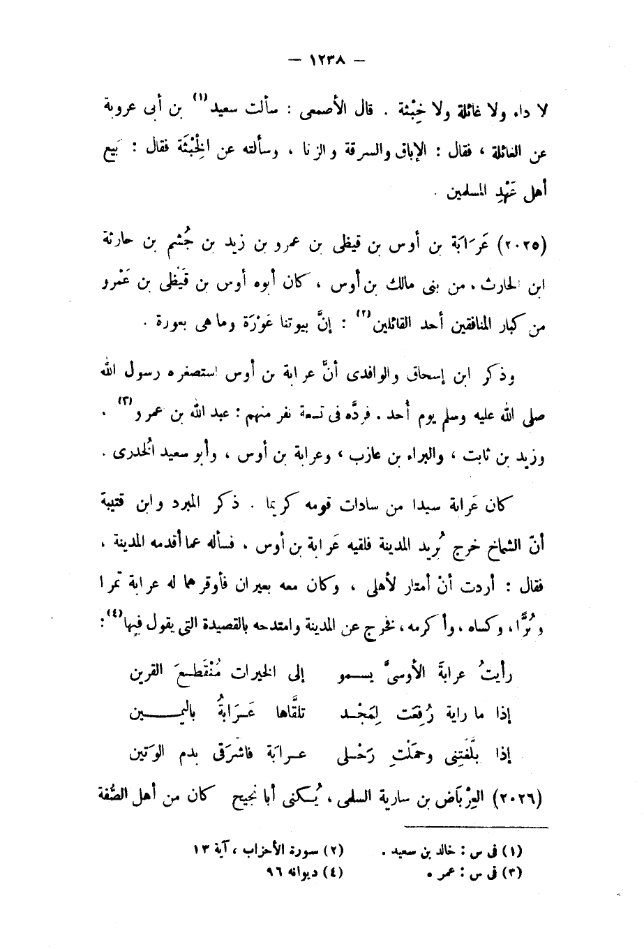 (٢٠٢٥) عرابة بْن أوس بْن قيظي بْن عَمْرو بْن زيد بن جشم بن حارثة ابن الْحَارِث،