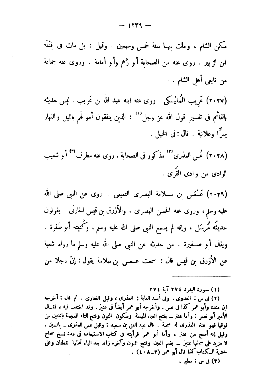 (٢٠٢٨) عس العذري [٢] مذكور فِي الصحابة.