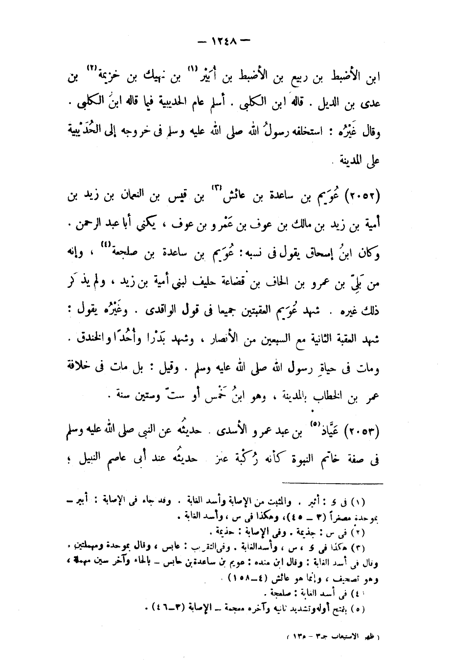 [٣] هكذا في ى، س، وأسد الغابة. وفي التقريب: عابس، وقال بموحدة ومهملتين، وقال في أسد الغابة: وقال ابن مندة: عويم بن ساعدة بن حابس- بالحاء وآخر سين مهملة، وهو تصحيف، وإنما هو عائش (٤- ١٥٨) .