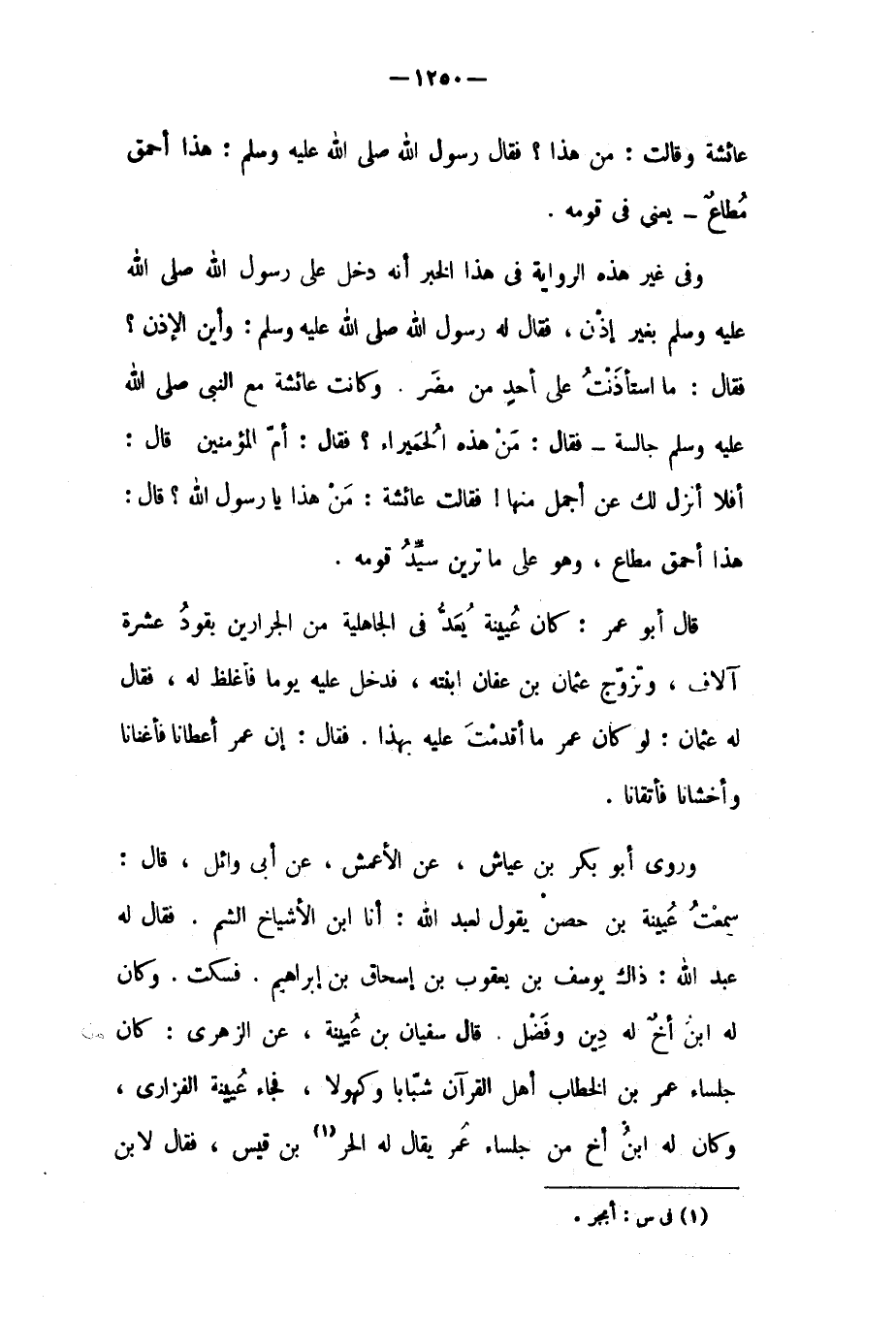 هَذَا أحمق مطاع، وَهُوَ على مَا ترين سيد قومه. قال أَبُو عُمَر: كَانَ عُيَيْنَة يعد فِي الجاهلية من الجرارين يقود عشرة آلاف، وتزوج عُثْمَان بْن عَفَّان ابنته، فدخل عَلَيْهِ يوما فأغلظ له، فقال له عثمان: لو كَانَ عُمَر مَا أقدمت عَلَيْهِ بهذا. فَقَالَ: إن عُمَر أعطانا فأغنانا وأخشانا فأتقانا.