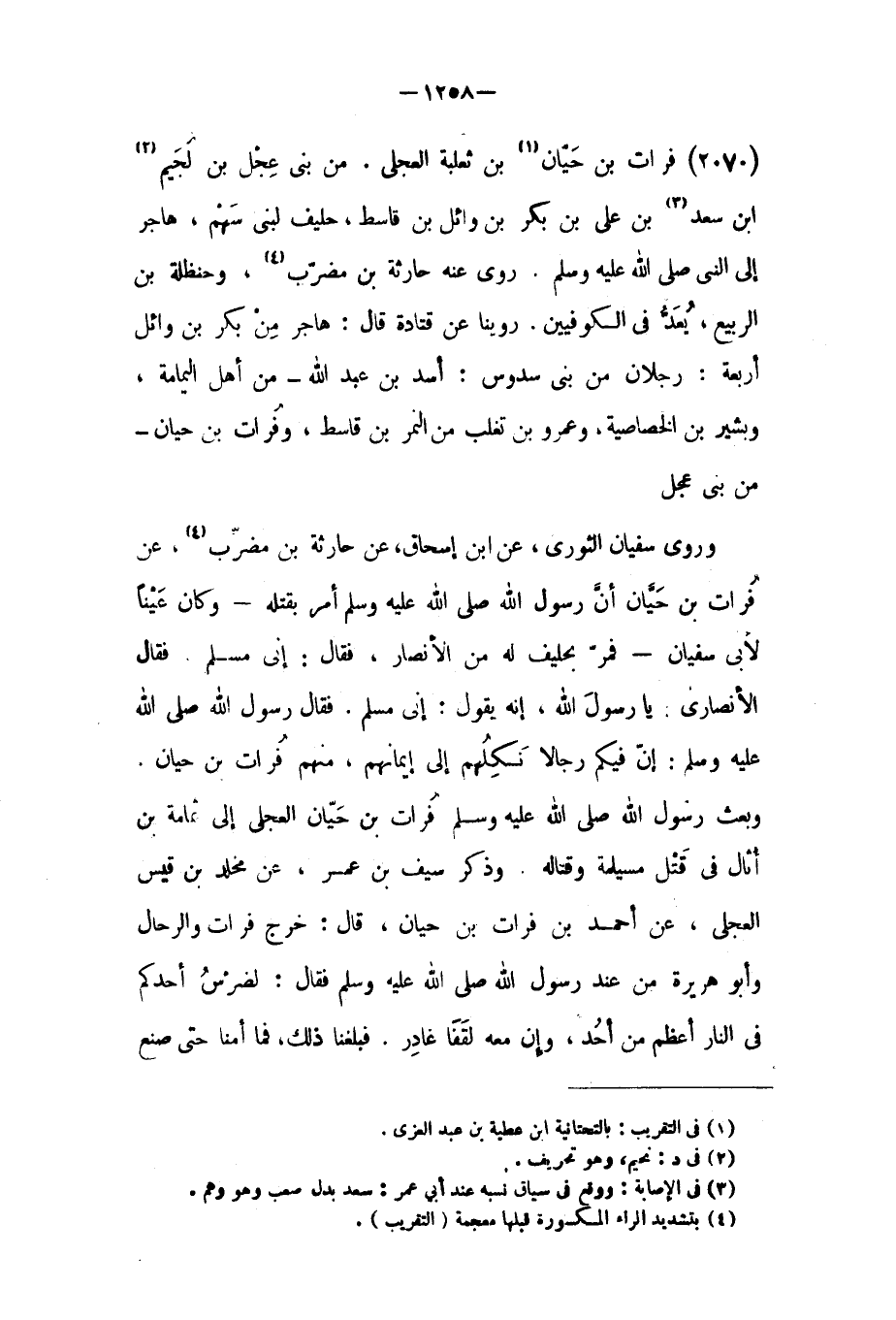 (٢٠٧٠) فرات بن حيّان [١] بن ثعلبة بن العجليّ.