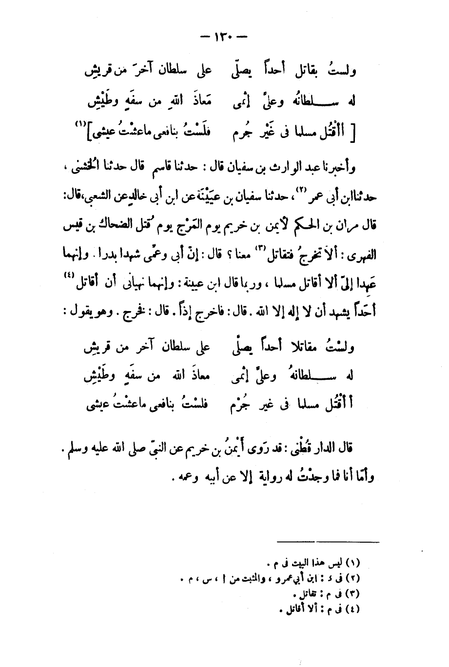 [أَأَقْتُلُ مُسْلِمًا فِي غير جرم ... فلست بنافعي ما عشت عيشي] [١]