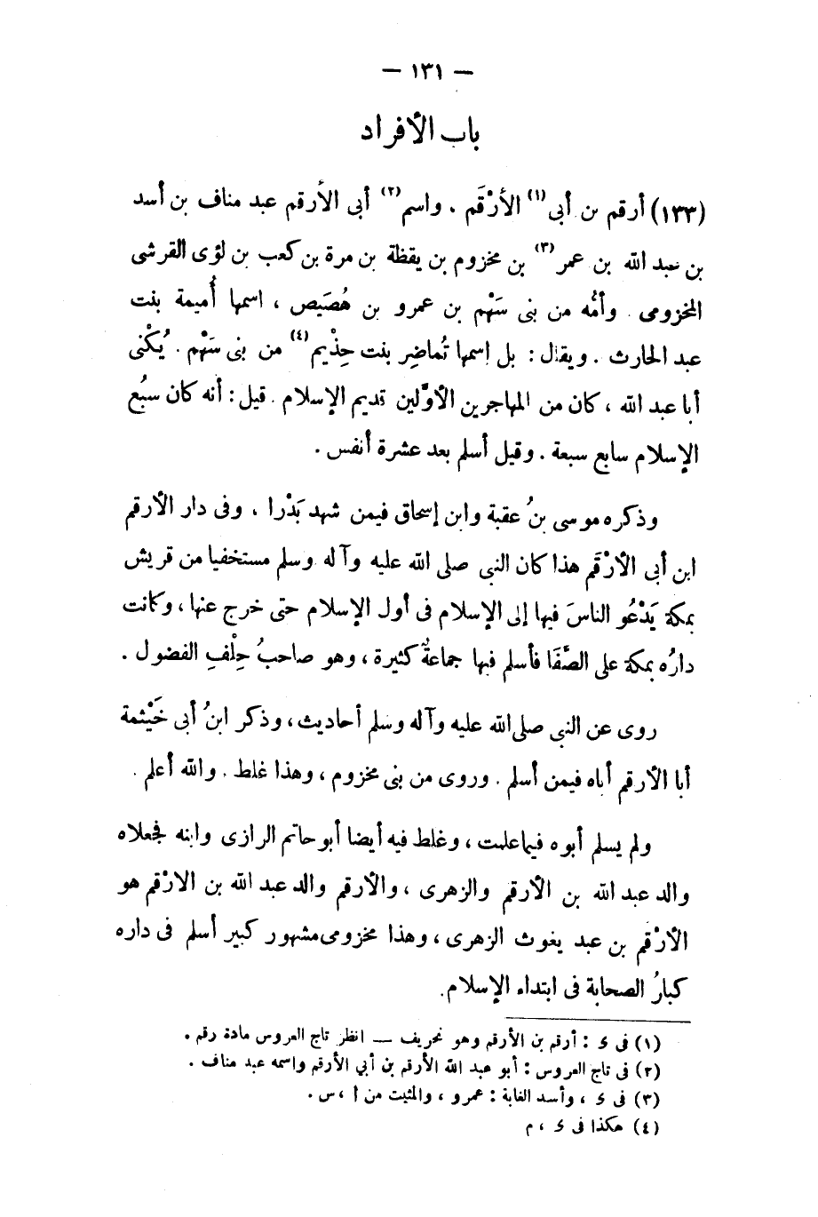 [٢] في تاج العروس: أبو عبد الله الأرقم بن أبي الأرقم واسمه عبد مناف.