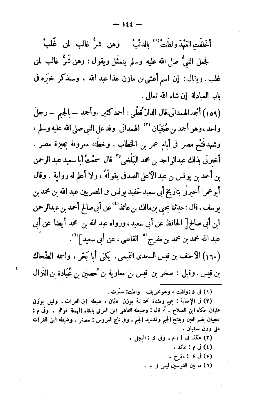 [٢] في الإصابة: بجيم ومثناة تحتانية بوزن عثمان، ضبطه ابن الفرات. وقيل بوزن عليان حكاه ابن الصلاح. ثم قال: وضبطه القاضي ابن العربيّ بالخاء المهملة فوهم. وفي م: