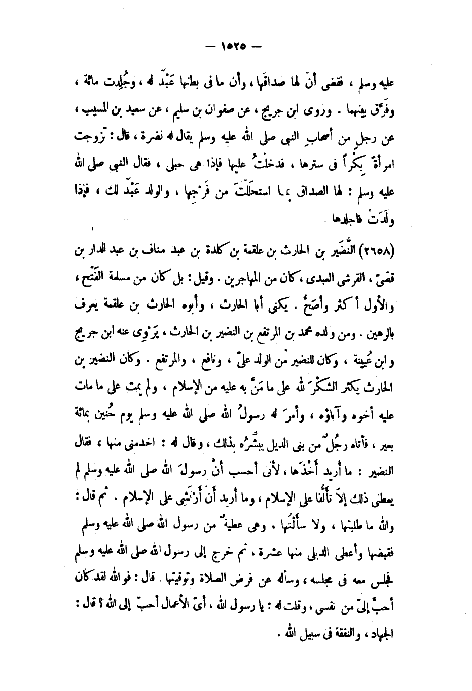 (٢٦٥٨) النضير بْن الحارث بن علقمة بن كلدة بن عبد مناف بْن عبد الدار بْن قصي، القرشي العبدي،