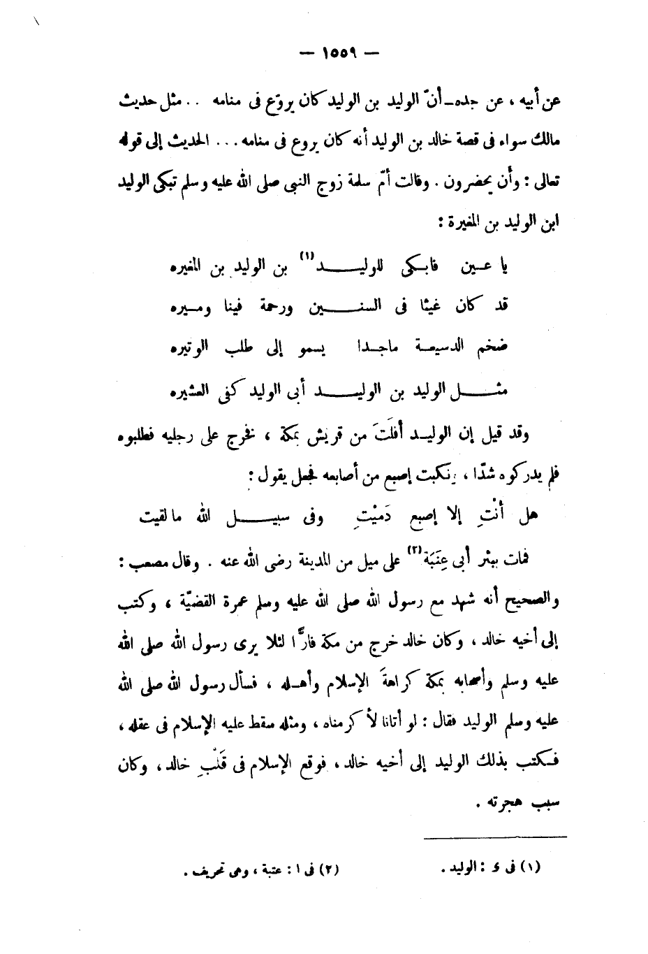 يَا عين فابكي للوليد [١] ... بْن الوليد بْن الْمُغِيرَةِ