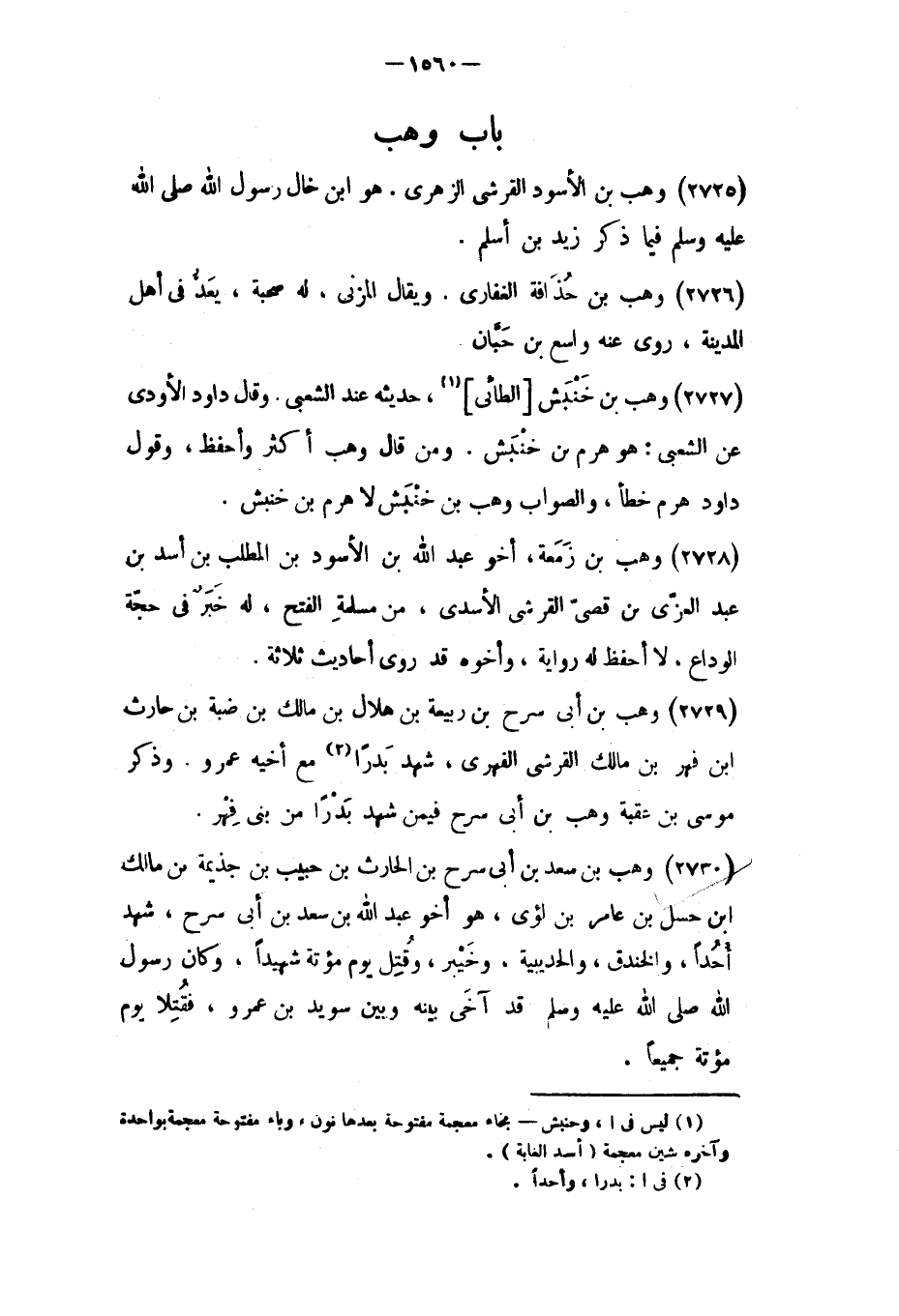 (٢٧٣٠) وهب بْن سعد بْن أبي سرح بْن الحارث بْن حبيب بْن جذيمة بن مالك ابن حسل بْن عامر بْن لؤي،