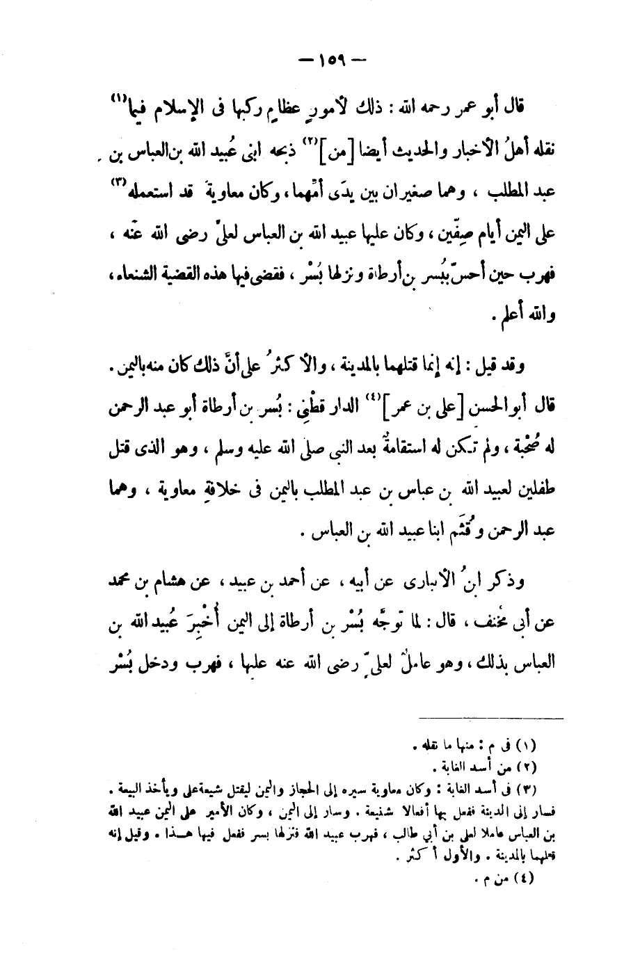 قَالَ أبو عمر رحمه الله: ذلك لأمور عظام ركبها في الإسلام فيما [١] نقله أهل الأخبار والحديث أيضًا [من] [٢] ذبحه ابني عبيد الله بن العباس بن عَبْد المطلب، وهما صغيران بين يدي أمهما، وكان معاوية قد استعمله [٣] على اليمن أيام صفين، وكان عليها عبيد الله بن العباس لعلي رضي الله عنه، فهرب حين أحس ببسر بن أرطاة ونزلها بسر، فقضى فيها هذه القضية الشنعاء، والله أعلم.