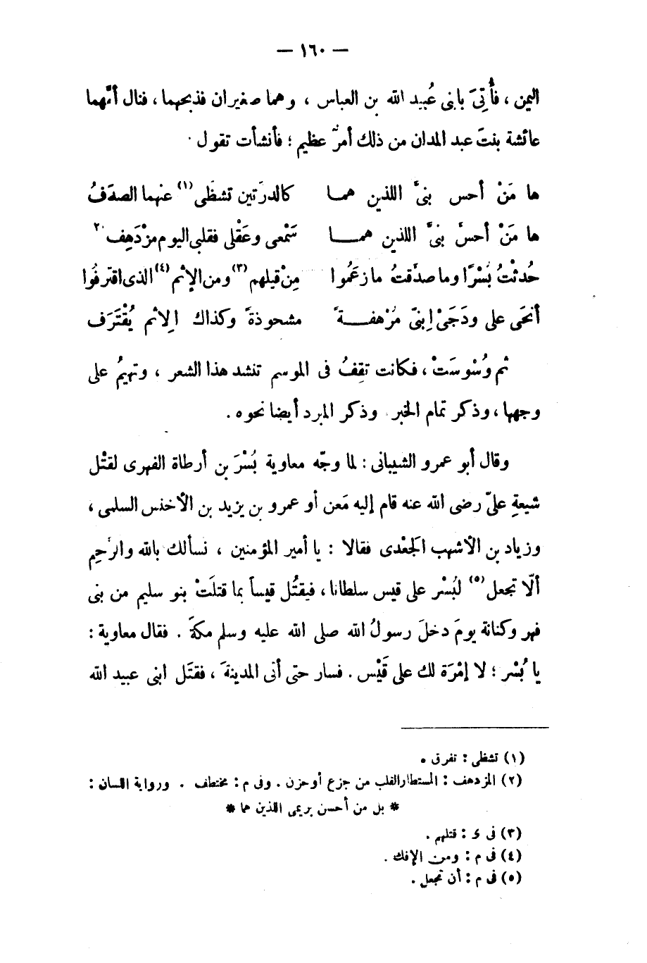 اليمن، فأتى بابني عبيد الله بن العباس، وهما صغيران فذبحهما، فنال أمهما عائشة بنت عَبْد المدان من ذلك أمر عظيم، فأنشأت تقول.