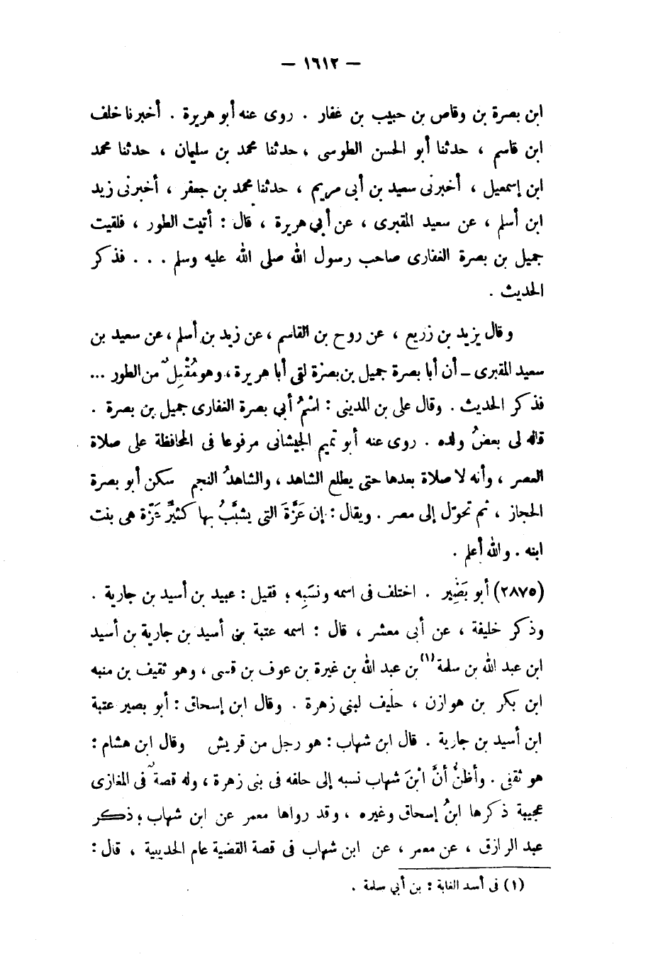 وَقَالَ يَزِيد بْن زريع، عَنْ روح بْن القاسم، عَنْ زيد بْن أسلم، عَنْ سَعِيد بْن سَعِيد الْمَقْبُرِيّ- أن أبا بصرة جميل بْن بصرة لقي أبا هريرة، وَهُوَ مقبل من الطور ...