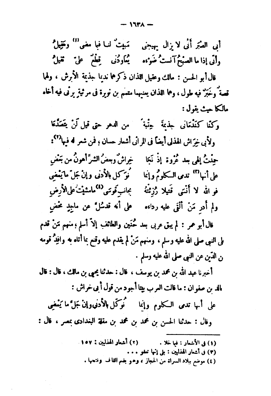 أَخْبَرَنَا عبد الله بن محمد بن يوسف، قال: حَدَّثَنَا يَحْيَى بْن مالك، قَالَ: قَالَ خالد؟ بْن صفوان: مَا قالت العرب بيتًا أجود من قول أبى خراش: