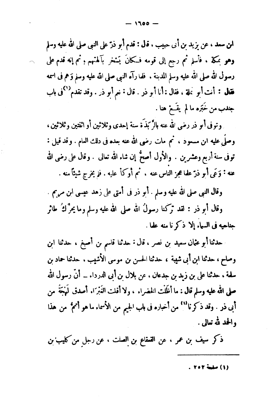 حَدَّثَنَا أَبُو عُثْمَانَ سَعِيدُ بْنُ نَصْرٍ، قَالَ: حَدَّثَنَا قَاسِمُ بْنُ أَصْبَغَ، حَدَّثَنَا ابن وضاح، حدثنا ابن أبي شيبة، حدثنا الْحَسَنُ بْنُ مُوسَى الأَشْيَبُ، حَدَّثَنَا حَمَّادُ بْنُ سلمة، حدثنا علي بن زيد بن جدعان، عَنْ بِلالِ بْنِ أَبِي الدَّرْدَاءِ- أَنّ رَسُولَ اللَّهِ صَلَّى اللَّهُ عَلَيْهِ وَسَلَّمَ قَالَ: مَا أَظَلَّتِ الْخَضْرَاءُ، وَلا أَقَلَّتِ الْغَبْرَاءُ أَصْدَقَ لَهْجَةً مِنْ أَبِي ذَرٍّ. وَقَدْ ذَكَرْنَا [١] مِنْ أَخْبَارِهِ فِي بَابِ الْجِيمِ مِنَ الأَسْمَاءِ مَا هُوَ أَتَمُّ مِنْ هَذَا وَالْحَمْدُ للَّه تَعَالَى.