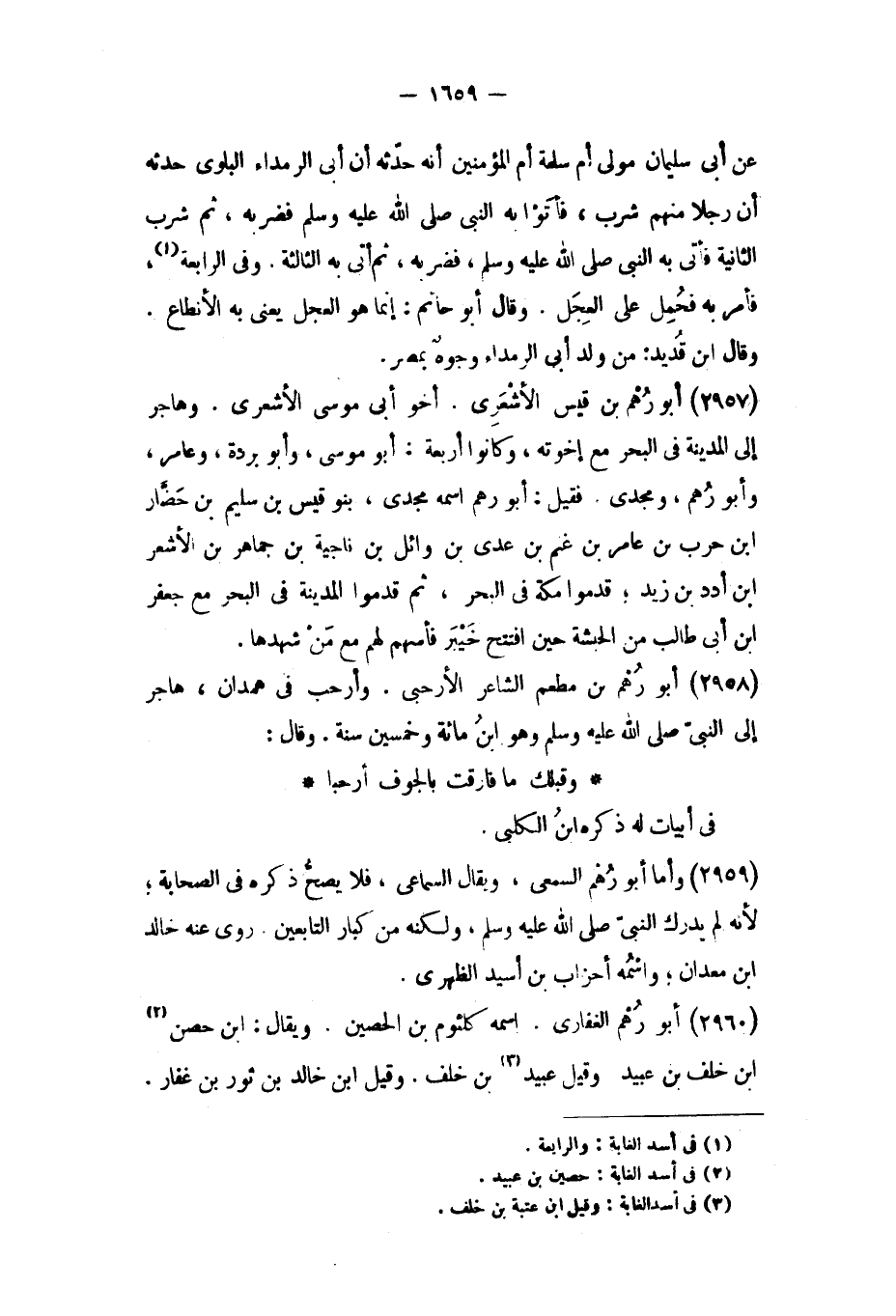 (٢٩٦٠) أَبُو رهم الغفاري. اسمه كلثوم بْن الحصين. ويقال: ابن حصن [٢] ابن خلف بْن عبيد وقيل عبيد [٣] بْن خلف. وقيل ابْن خالد بْن ثور بْن غفار.