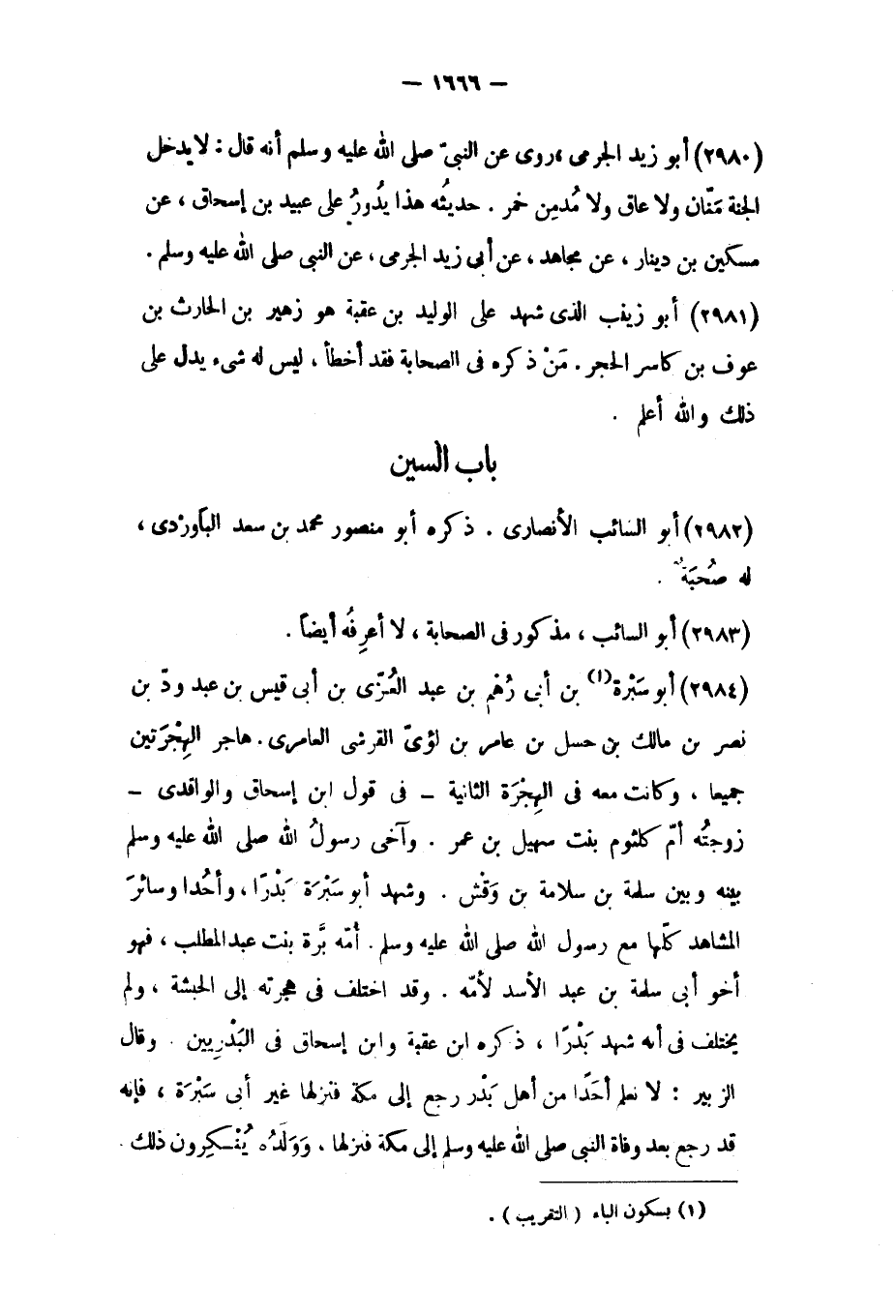 (٢٩٨٤) أَبُو سبرة [١] بْن أبي رهم بْن عبد العزى بْن أبي قيس بن عبد ود بن نصر بن مالك بن حسل بن عامر بن لؤي القرشي العامري.