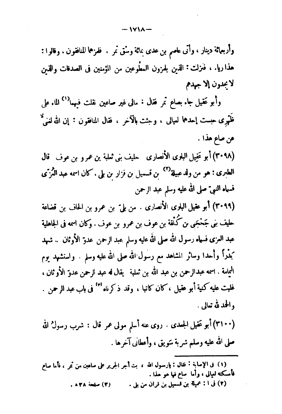 (٣٠٩٨) أَبُو عقيل البلوي الأَنْصَارِيّ