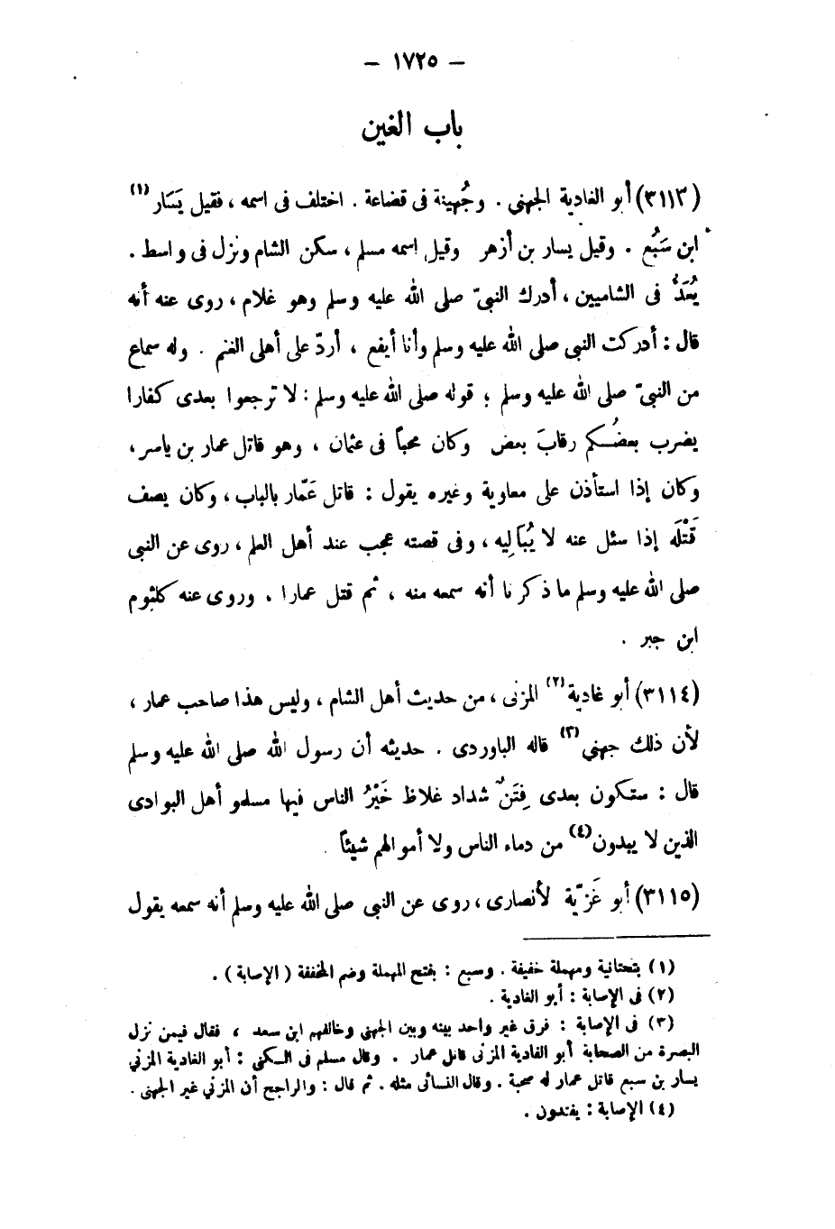 [٣] في الإصابة: فرق غير واحد بينه وبين الجهنيّ وخالفهم ابن سعد، فقال فيمن نزل البصرة من الصحابة أبو الفادية المزني قاتل عمار. وقال مسلم في الكنى: أبو الغادية المزني يسار بن سبع قاتل عمار له صحبة. وقال النسائي مثله. ثم قال: والراجح أن المزني غير الجهنيّ.