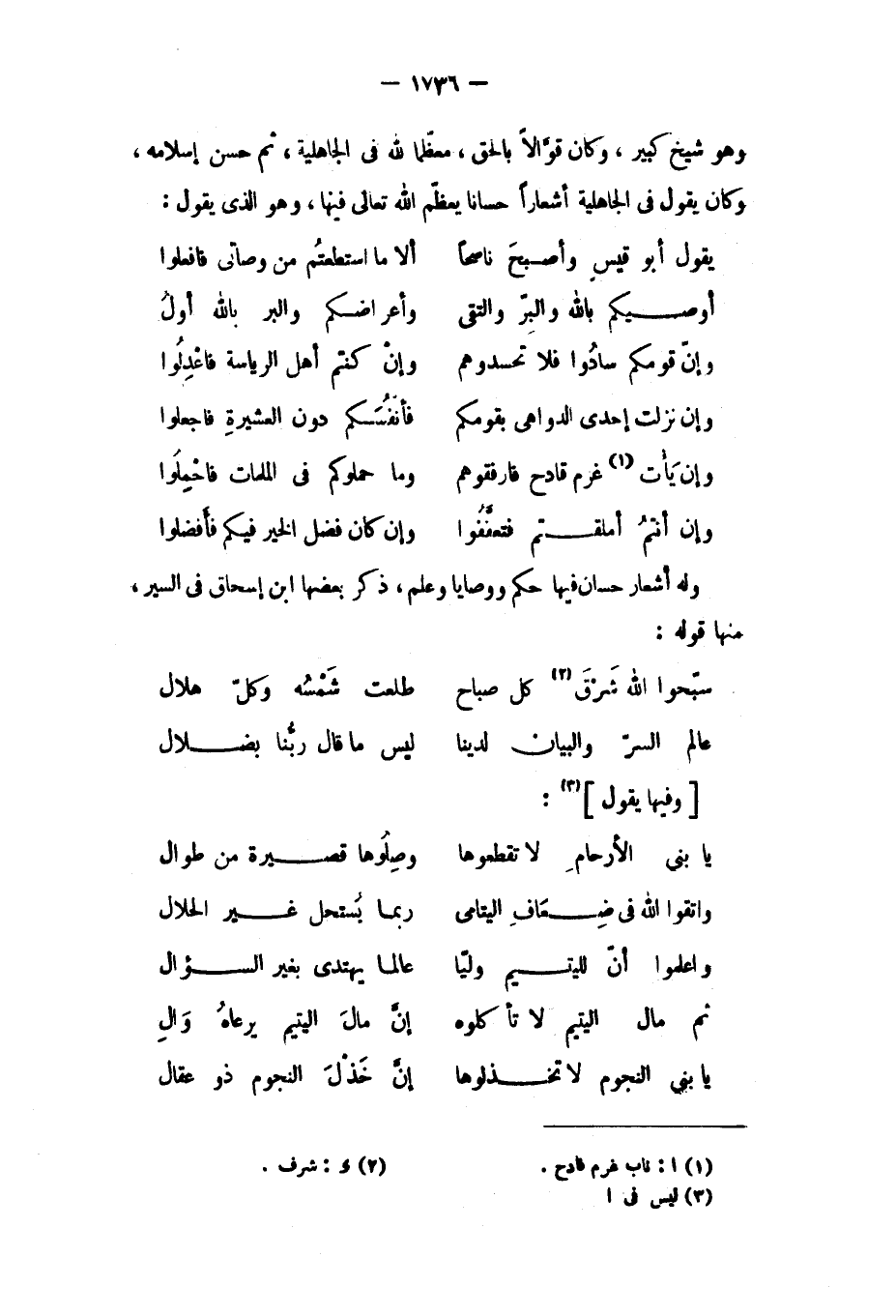 وَهُوَ شيخ كبير، وَكَانَ قوالًا بالحق، معظمًا للَّه فِي الجاهلية، ثم حسن إسلامه، وَكَانَ يقول فِي الجاهلية أشعارًا حسانًا يعظم اللَّه تعالى فيها، وهو الّذي يقول: