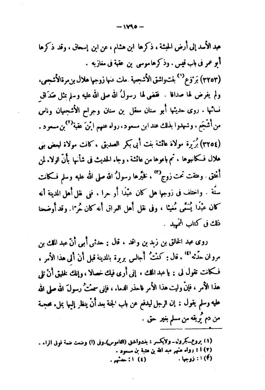 عبد الأسد إِلَى أرض الحبشة، ذكرها ابْن هشام، عَنِ ابْن إِسْحَاق، وقد ذكرها أَبُو عمر فِي باب قيس. وذكرها مُوسَى بن عقبة في مغازيه.